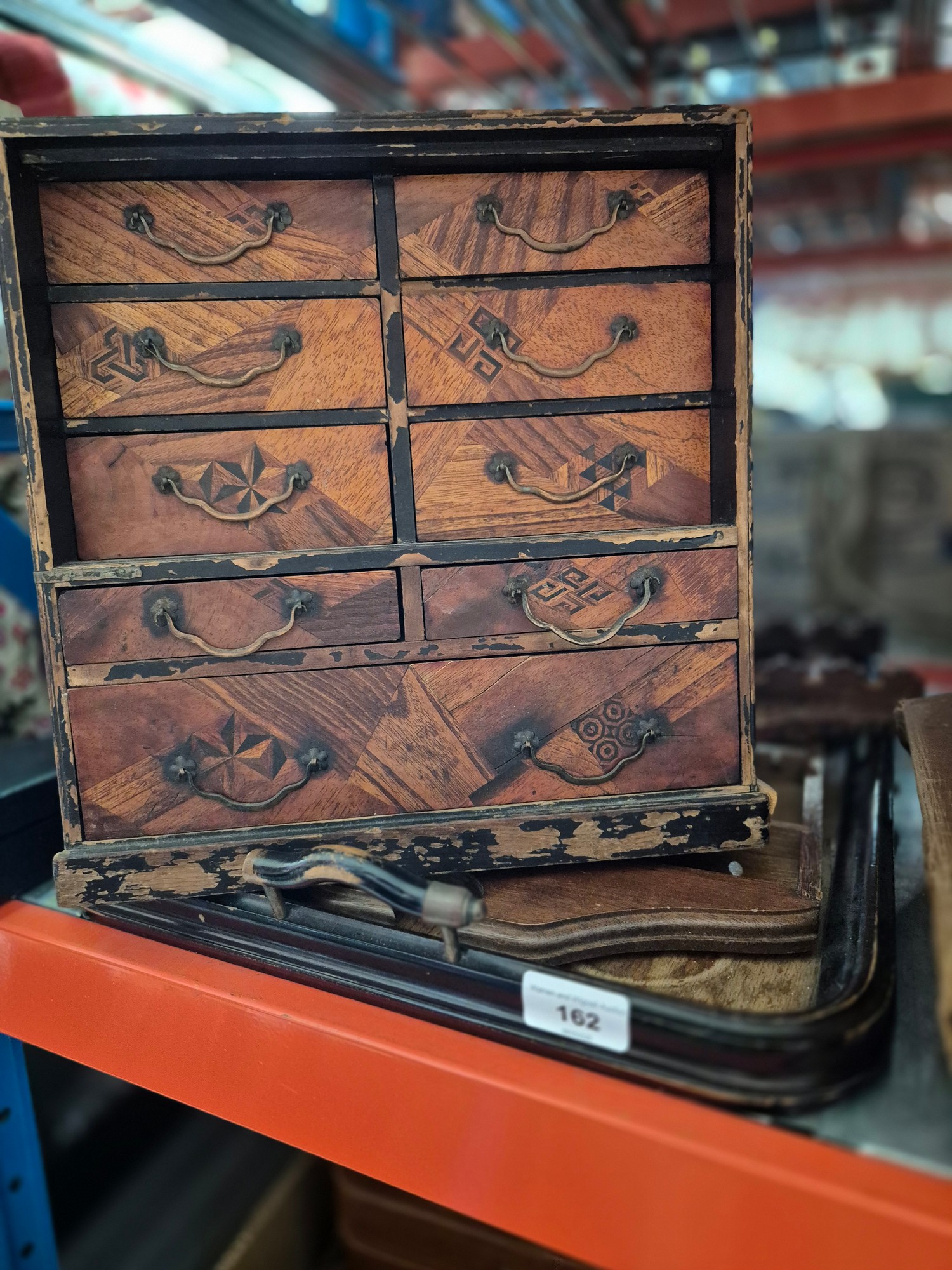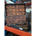 A multi drawer cabinet, a spoon rack and a breakfast tray