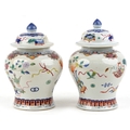 A near pair Chinese porcelain baluster vases and covers, eac...
