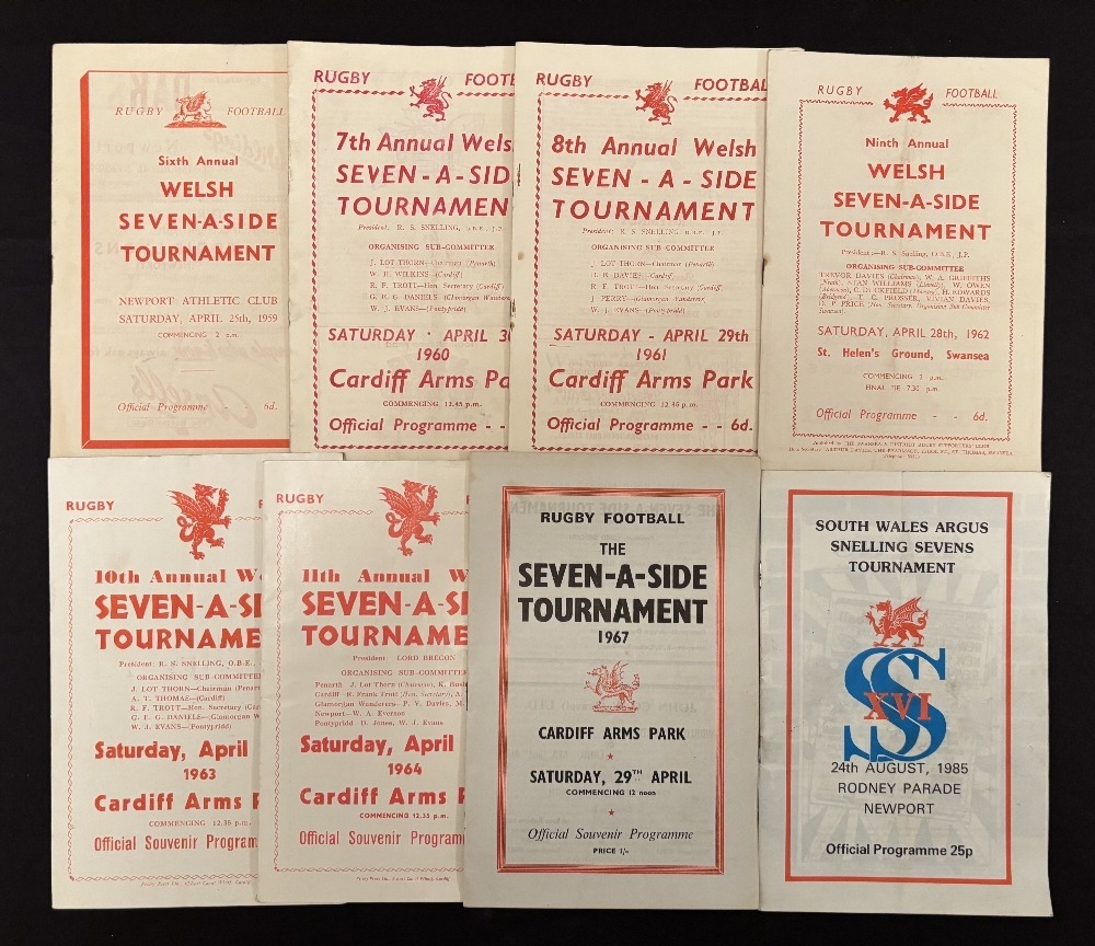 1959-85 Snelling Sevens Rugby Programmes (7): From 1959 to 1964 missing only 1962, plus 1967 and 1985. G/VG