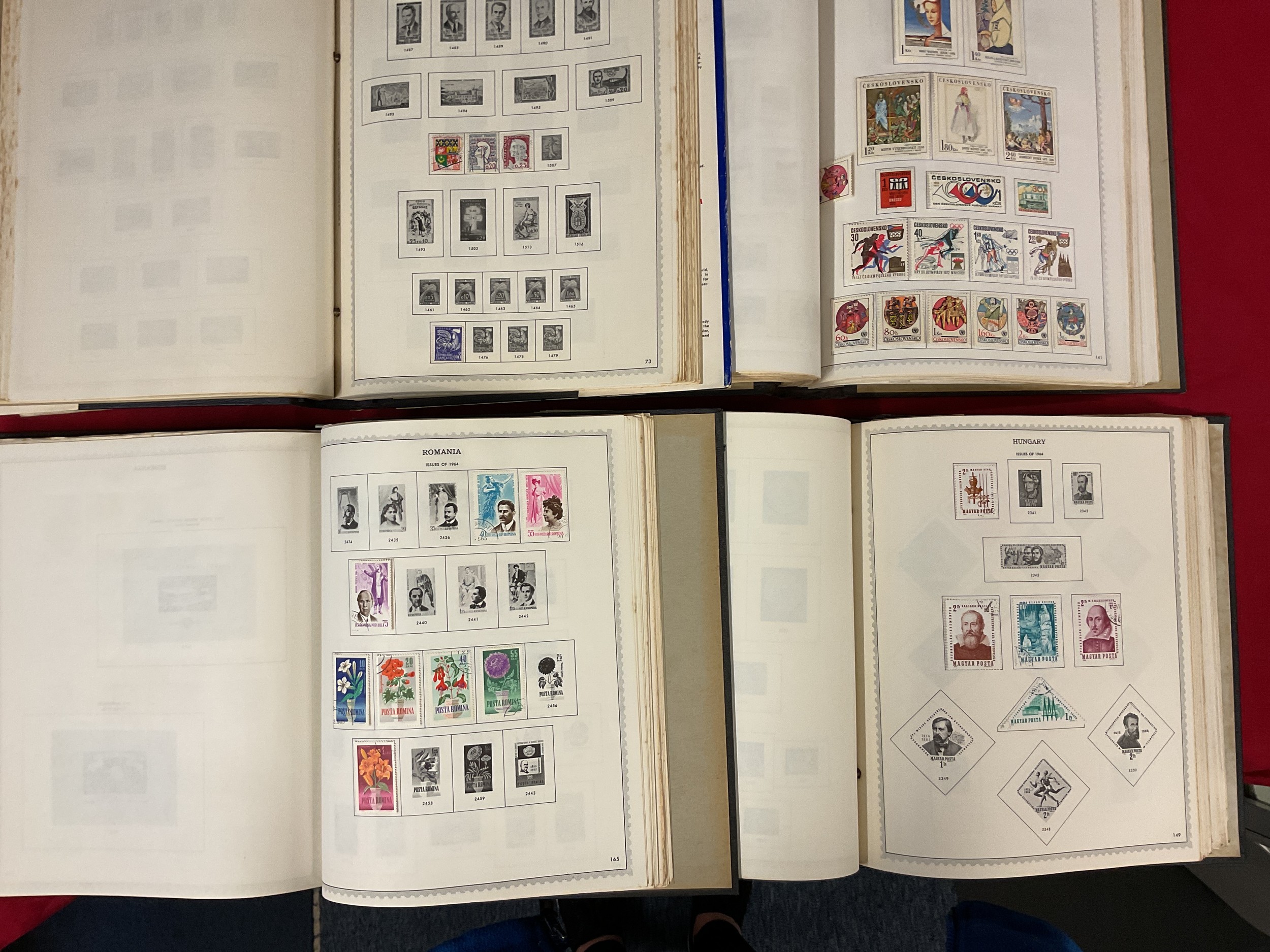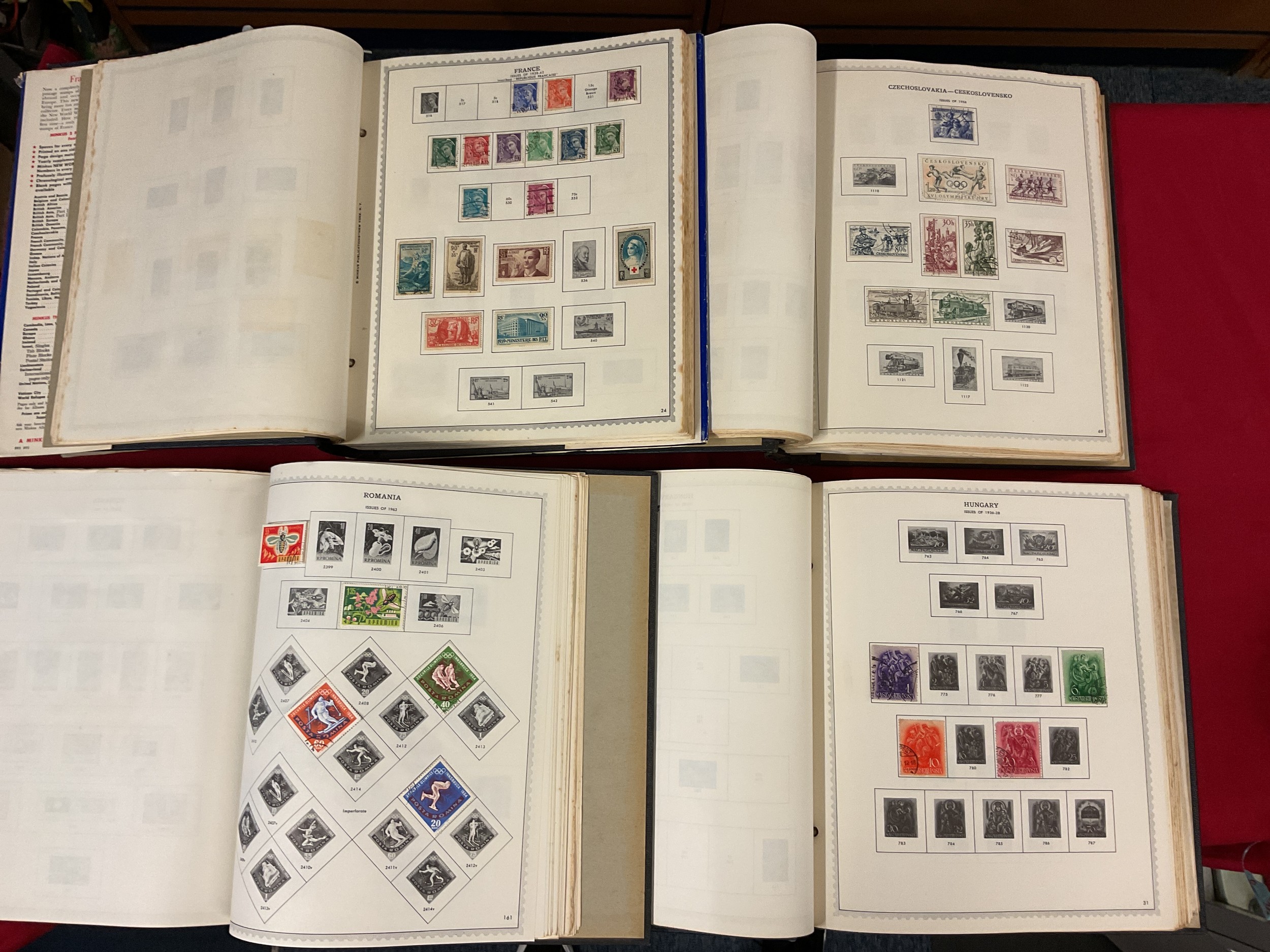 Four albums of stamps to include France, Czechoslovakia, Hungary and Romania