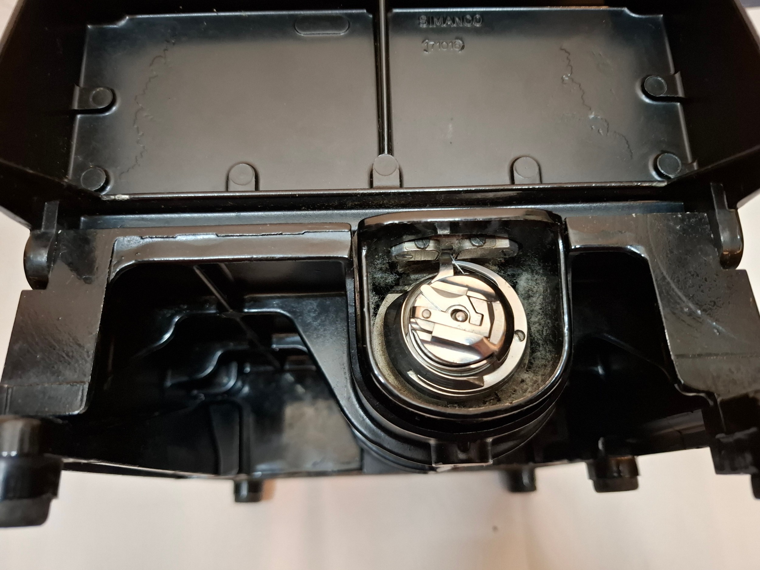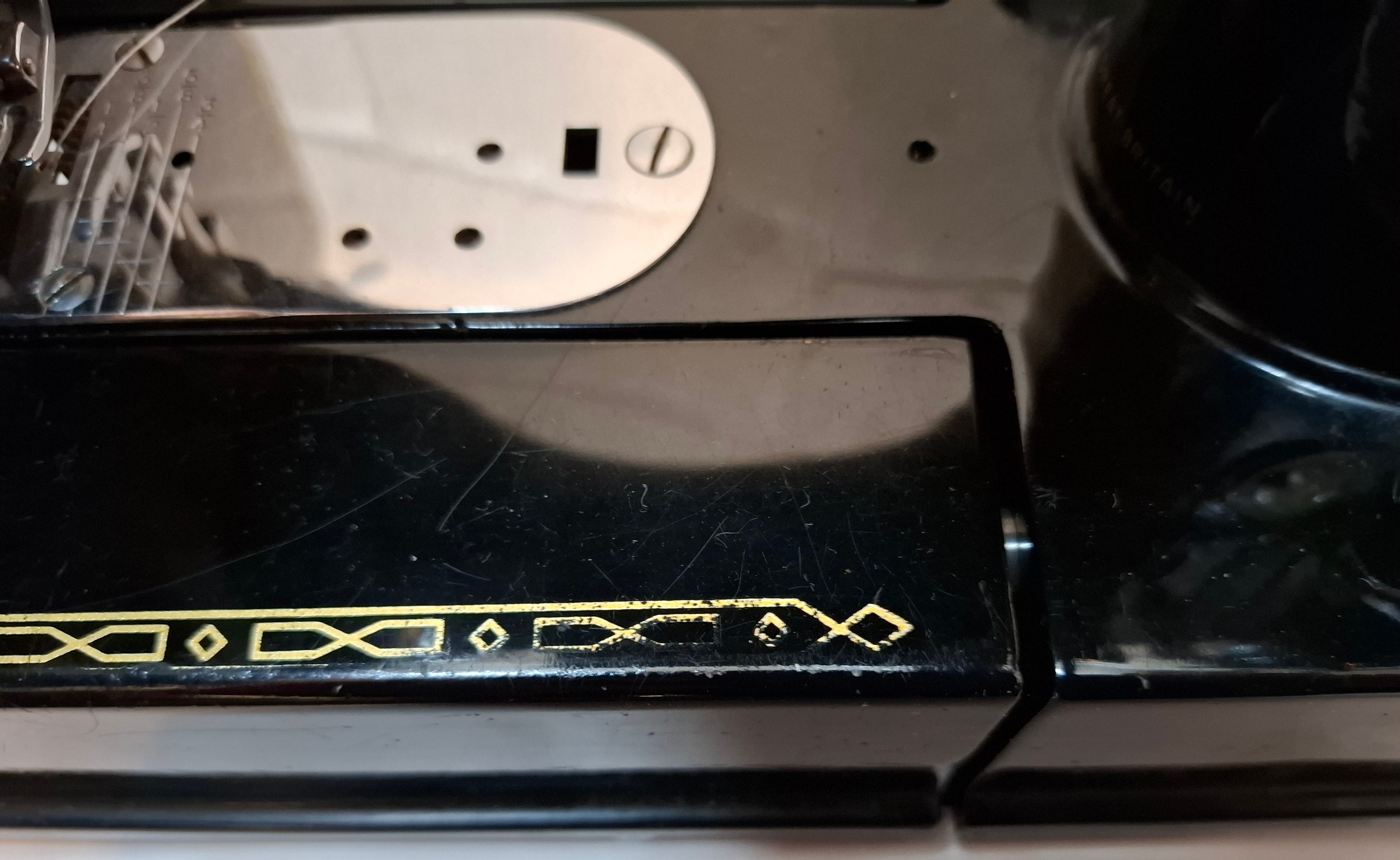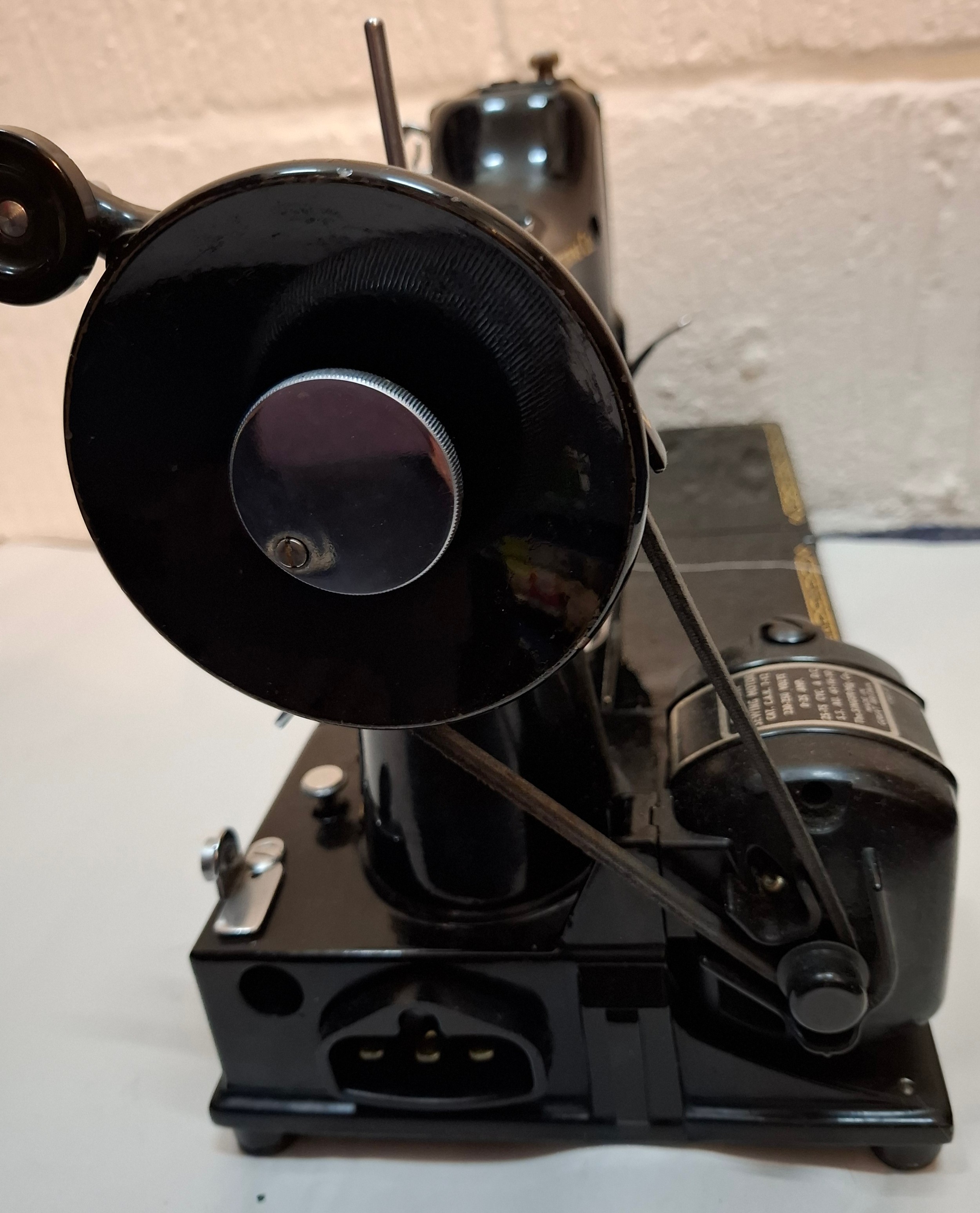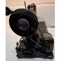 A 1957 Singer Feather weight 222K electric sewing machine serial no:EM957054 with case and accessories. Location: 1-3