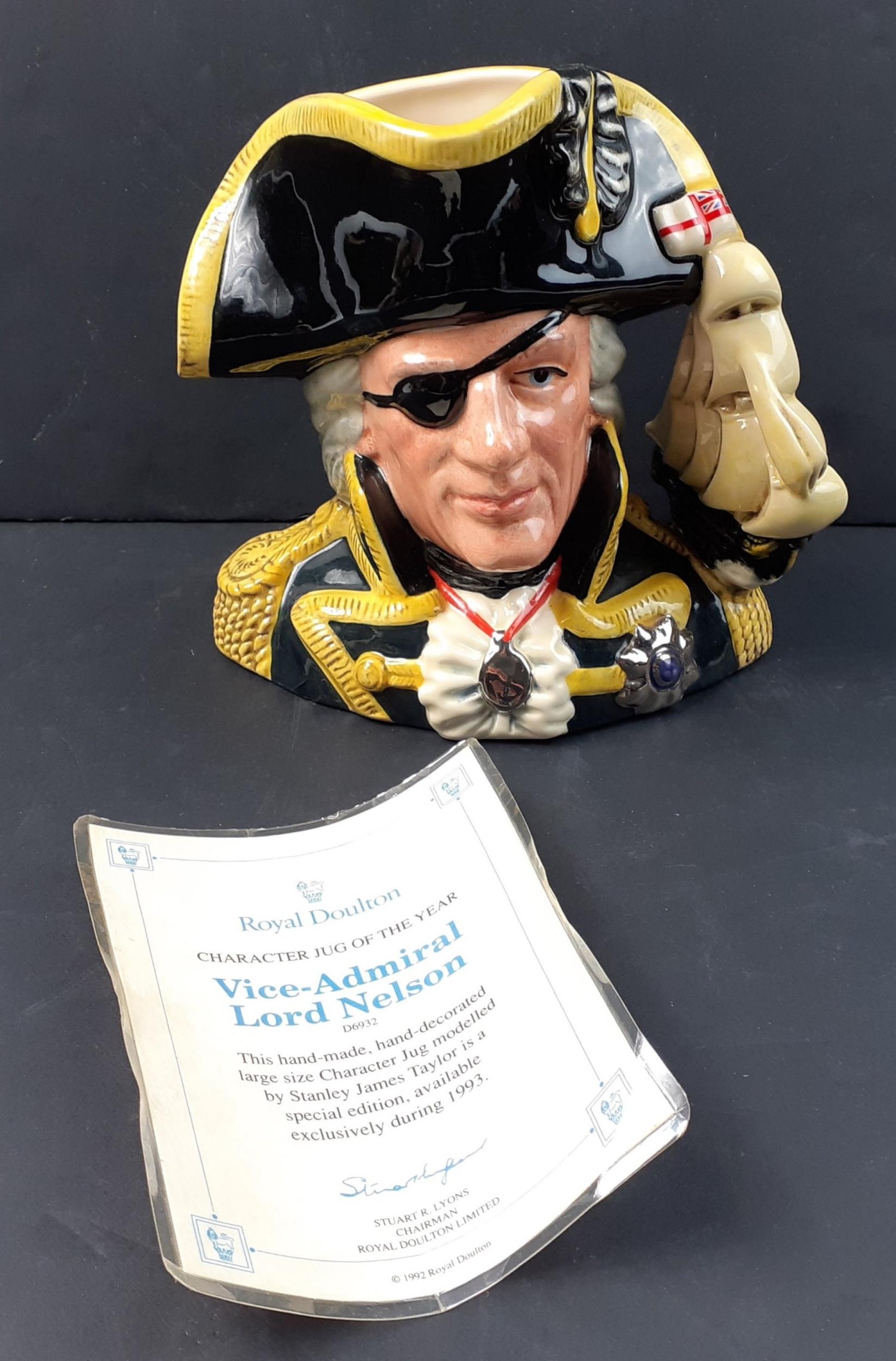 ROYAL DOULTON Character Jug - VICE ADMIRAL LORD NELSON D6932 - no chips, cracks or signs of damage repair - dimensions 16cm height x 19cm width approx