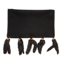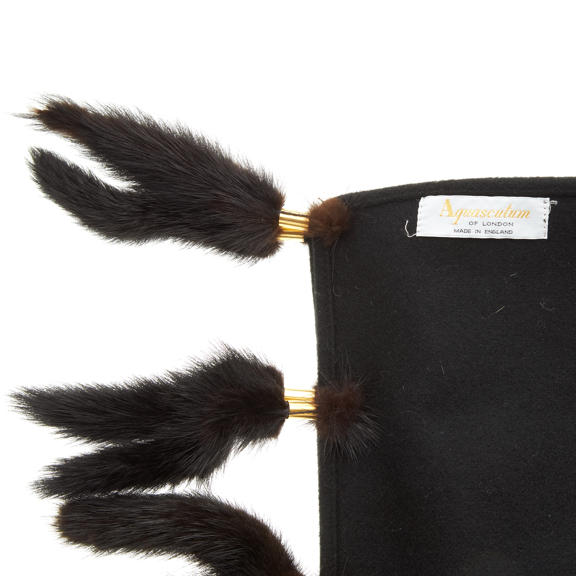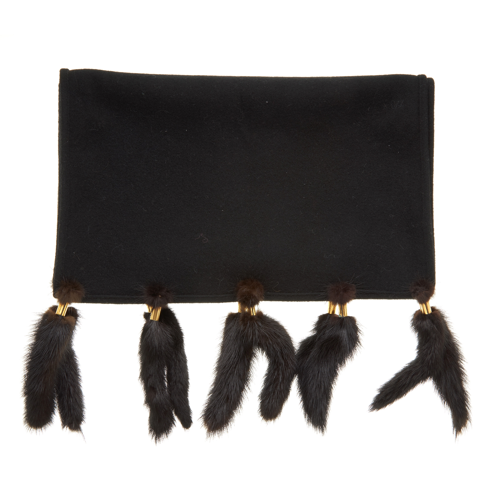 Aquascutum, a black wool shawl, featuring mink fur tassels at either end, measuring 38 by 187cm