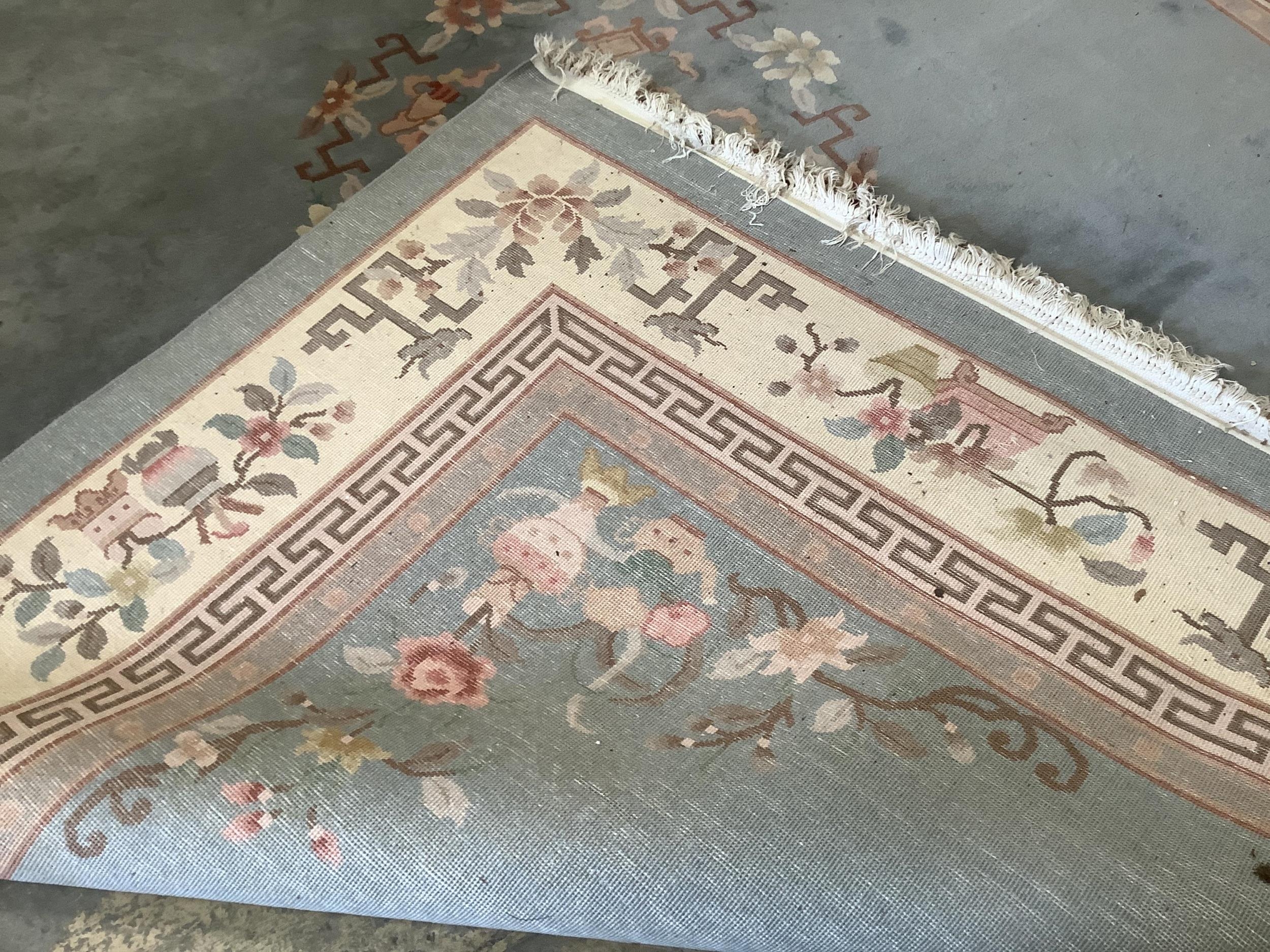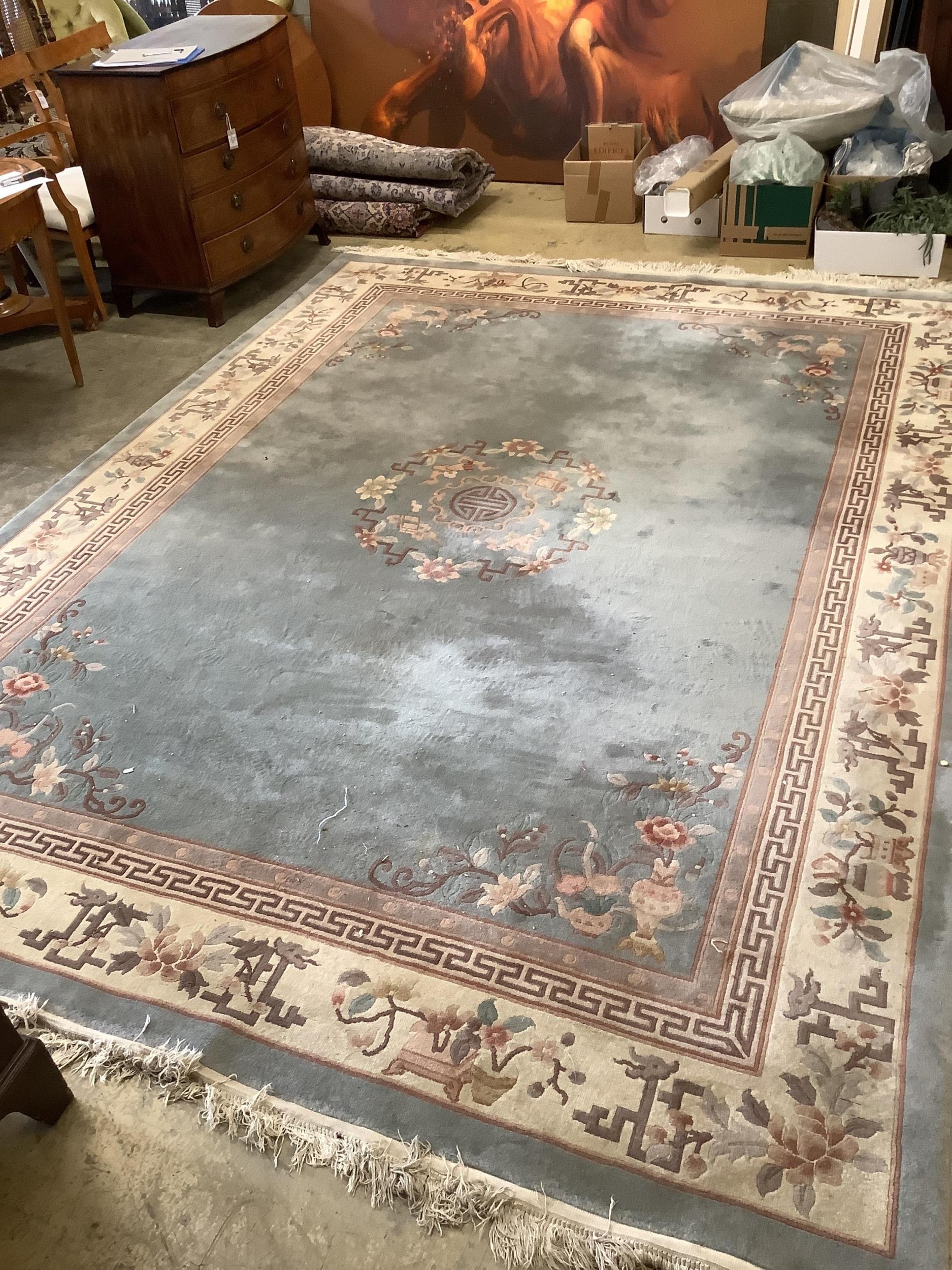 A Chinese celadon ground floral carpet, 370 x 272cm