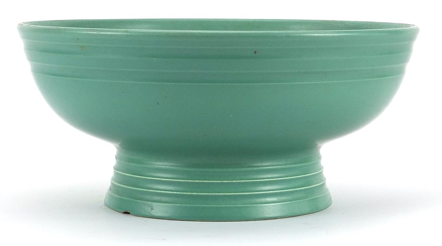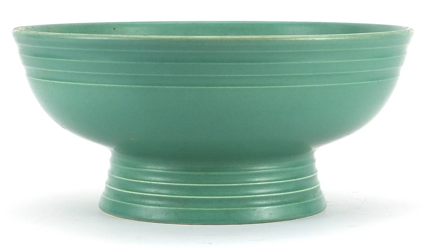 Keith Murray for Wedgwood, green glazed footed bowl, 26cm in diameter
