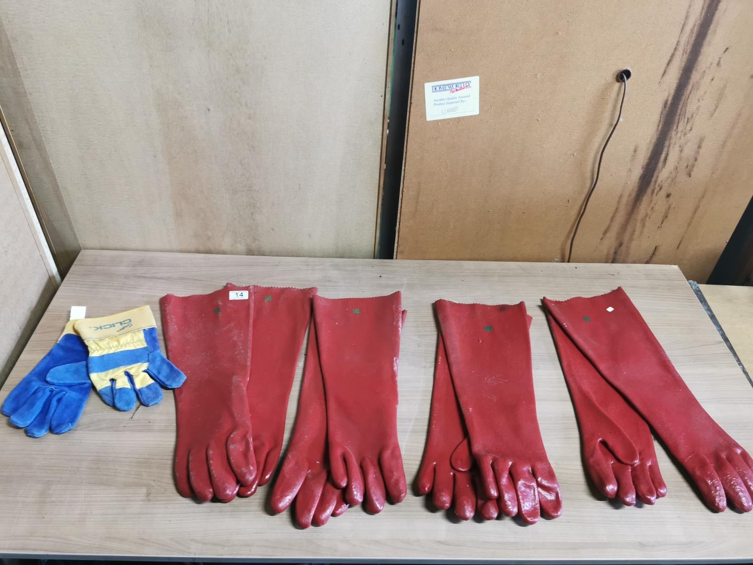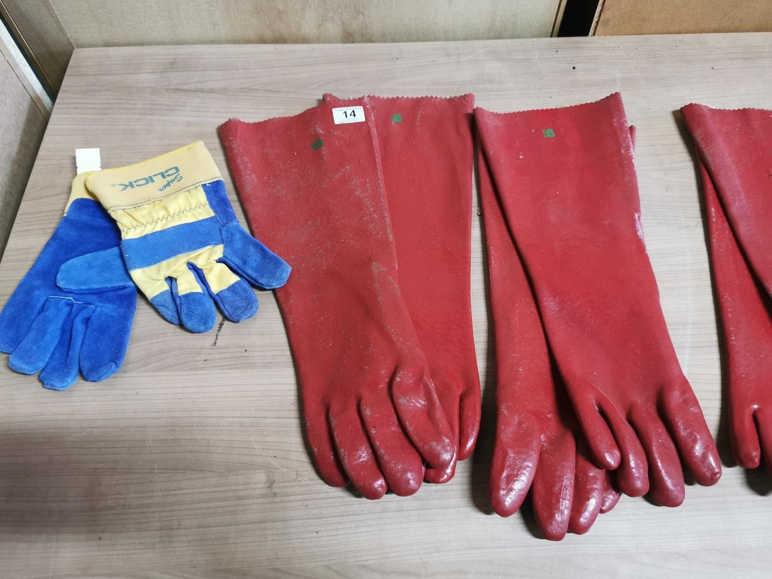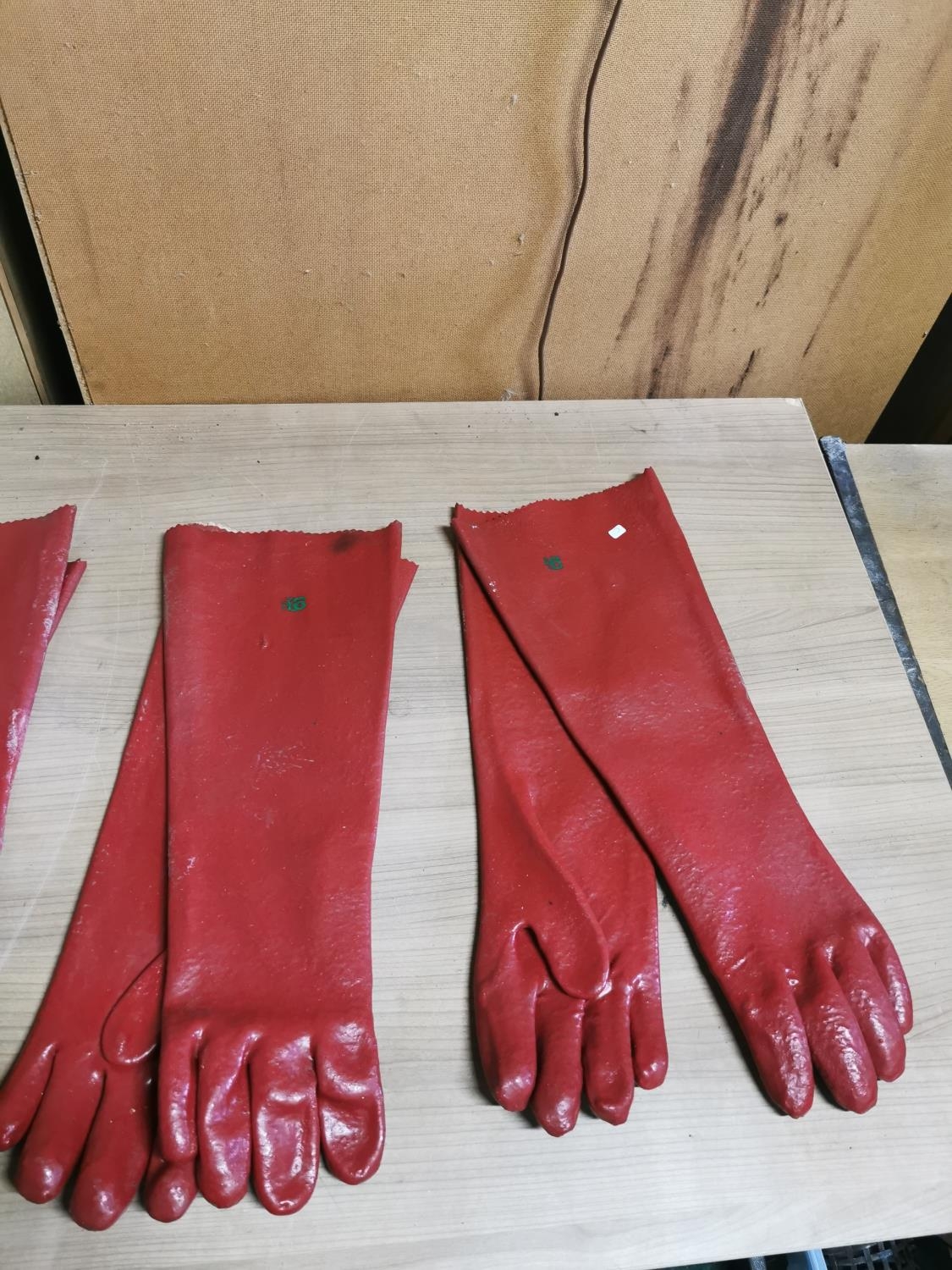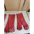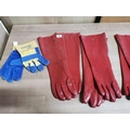 4 Pairs of long sleeved rubber gauntlets along with a pair of work gloves