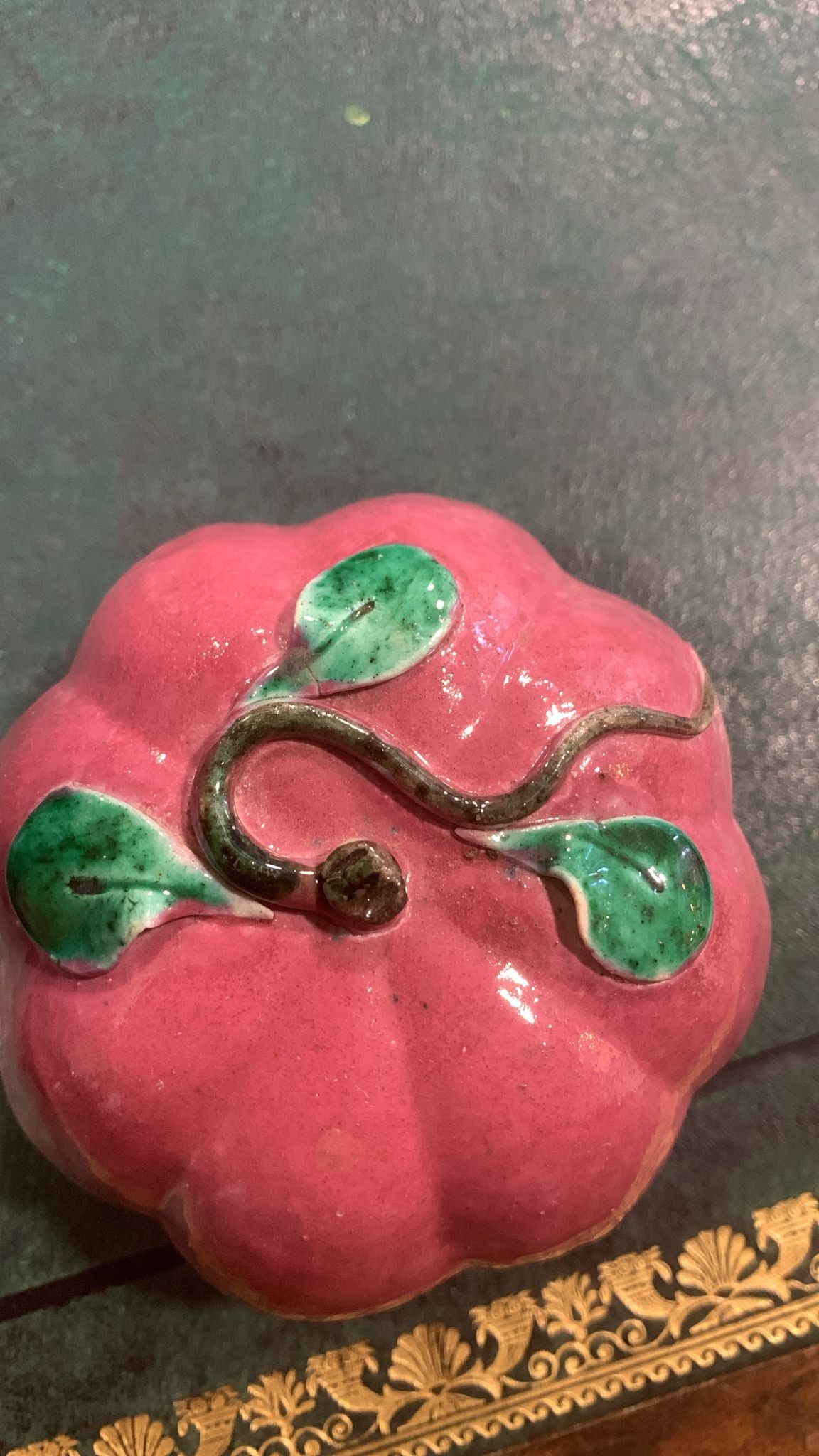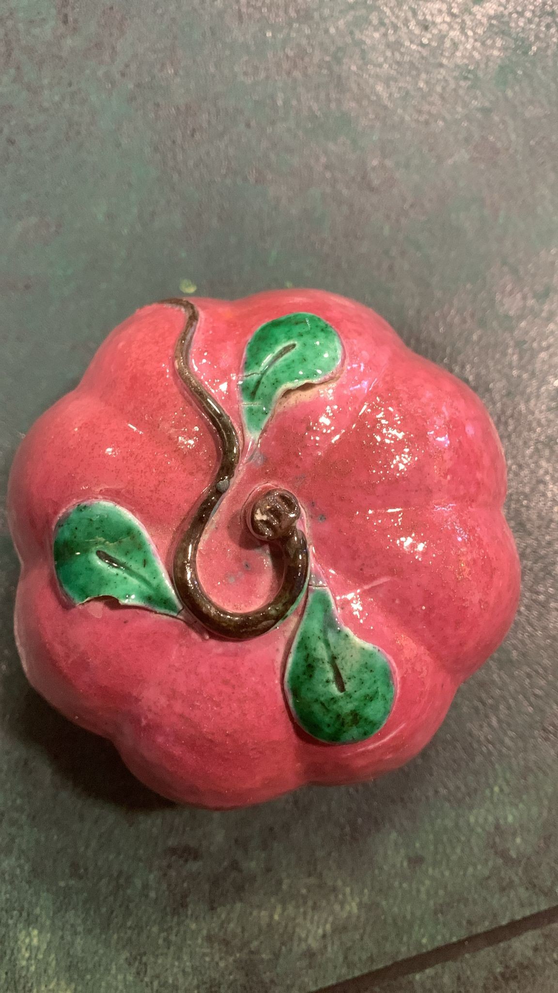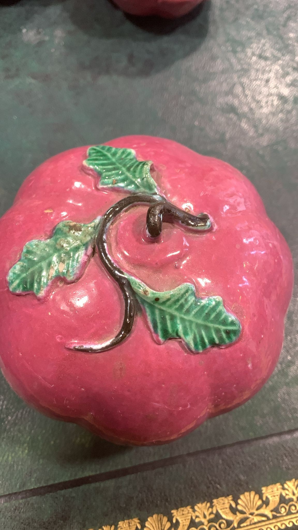 Three Chinese ceramic Altar fruits comprising three various purple pumpkins [3]
