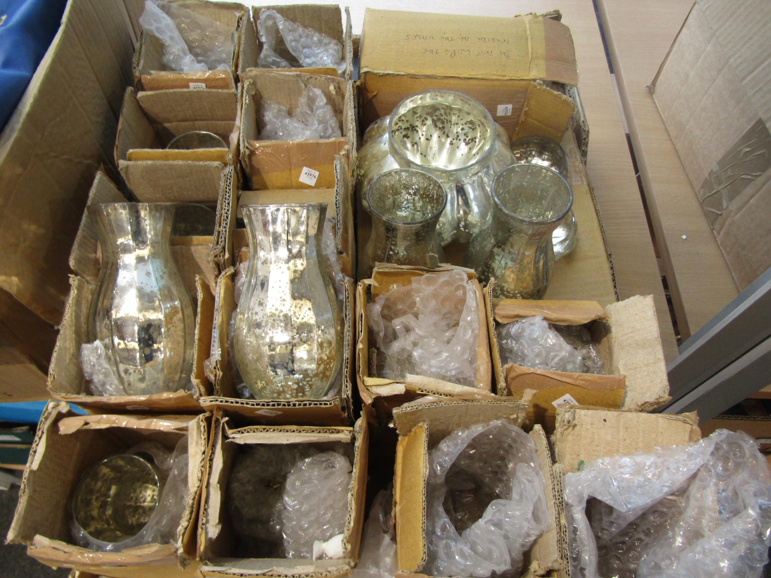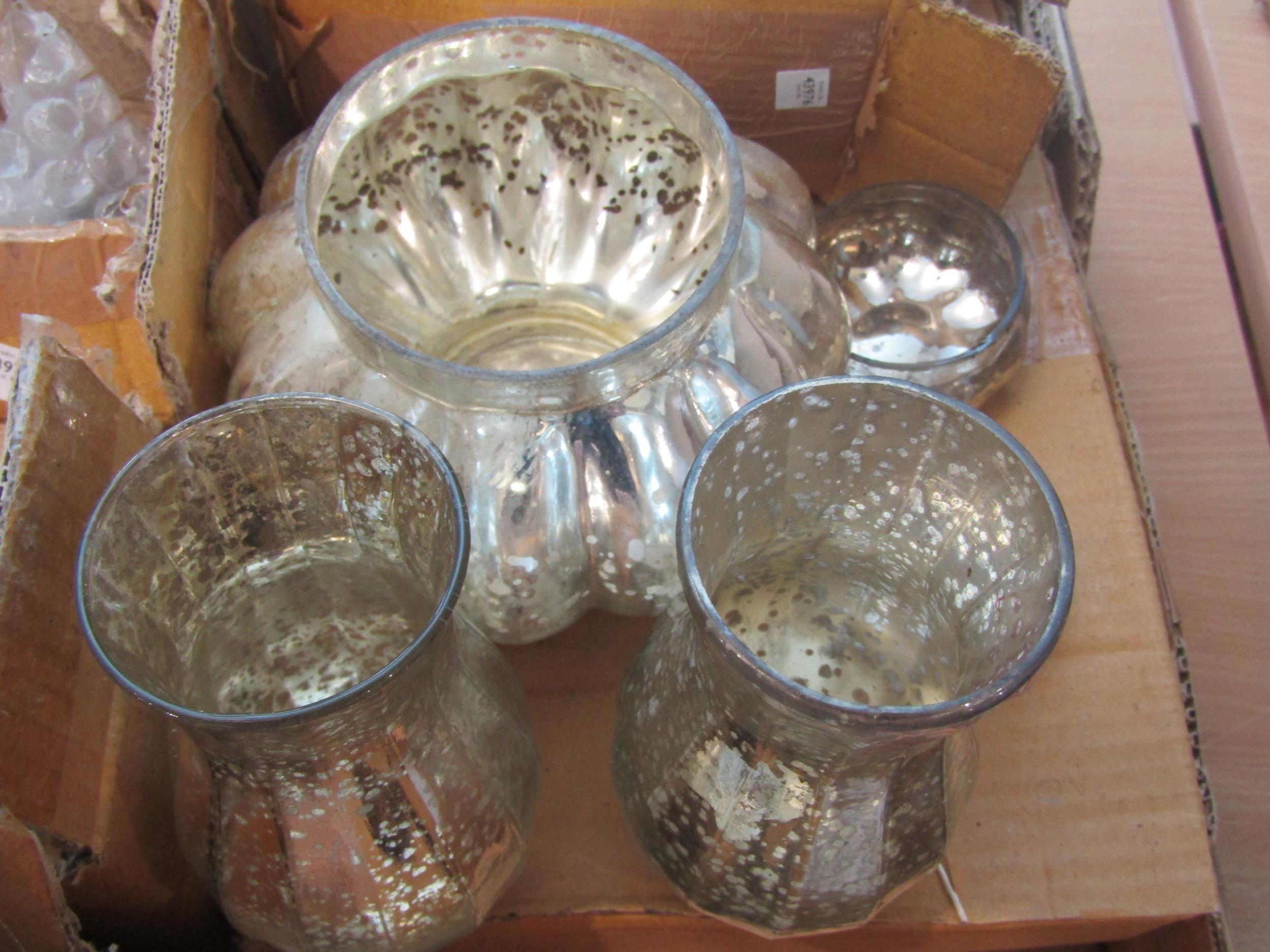 A selection of vintage mercury glass style tea light holders and vases