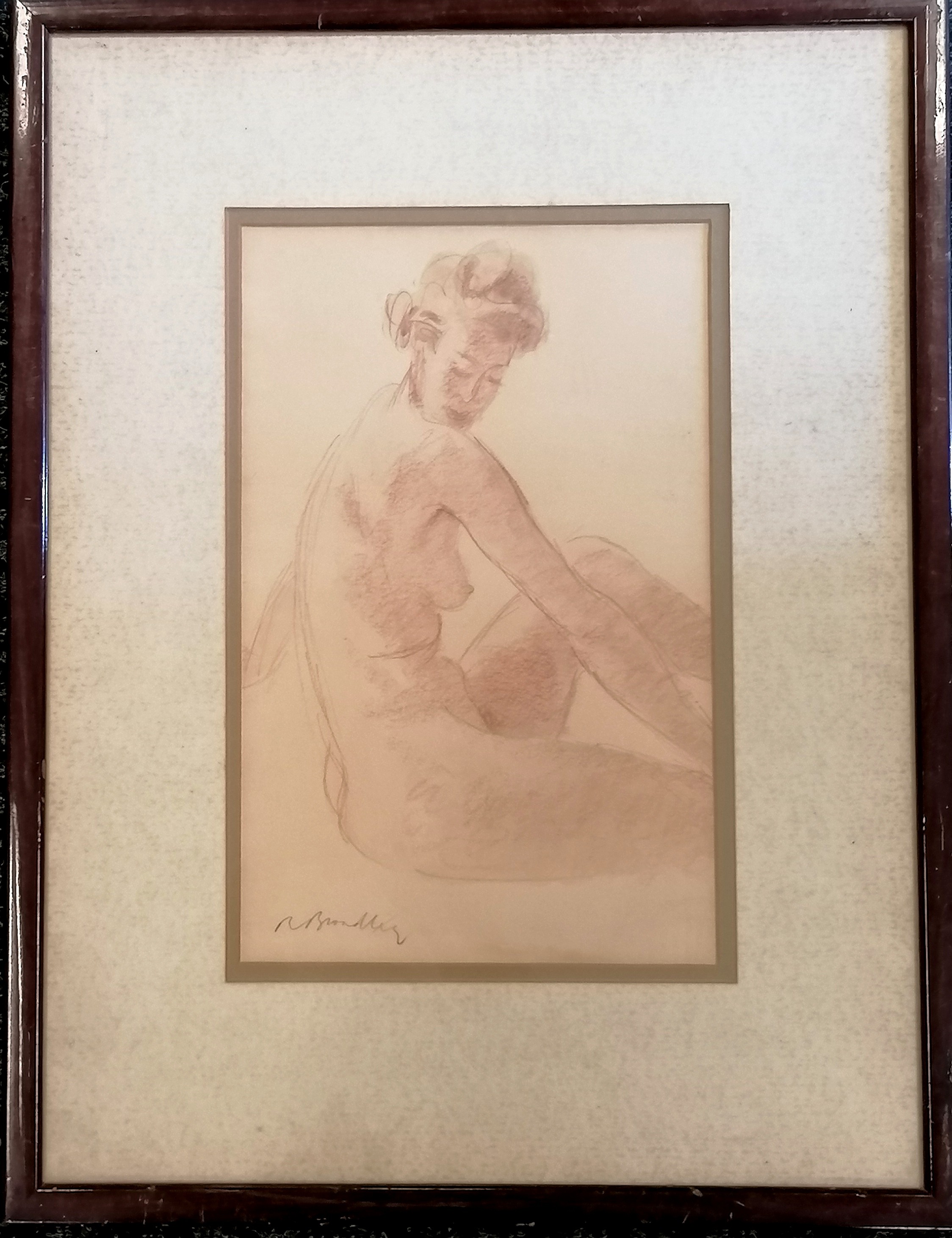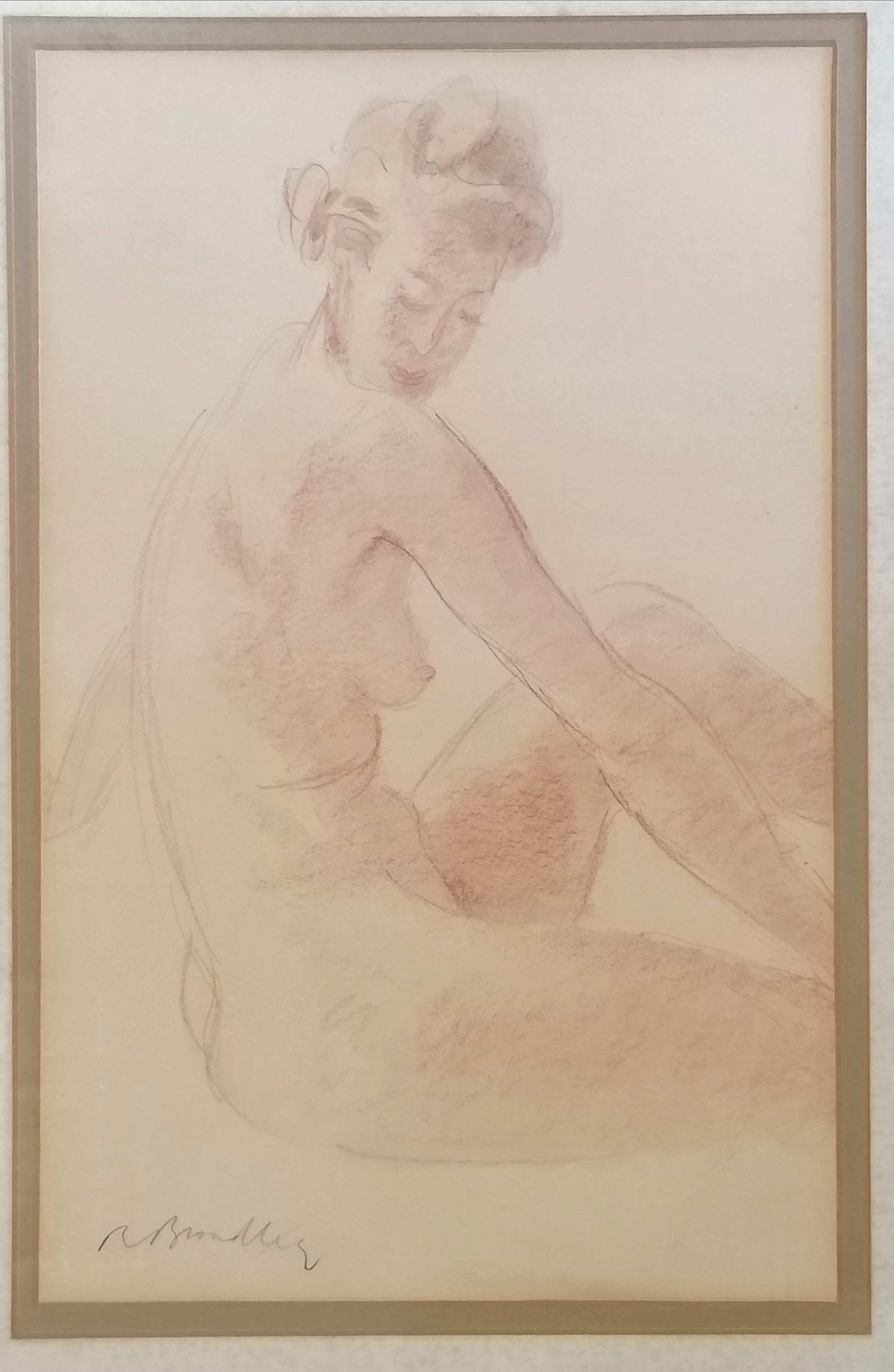 Mixed media signed drawing of a nude lady - frame 60cm x 46cm
