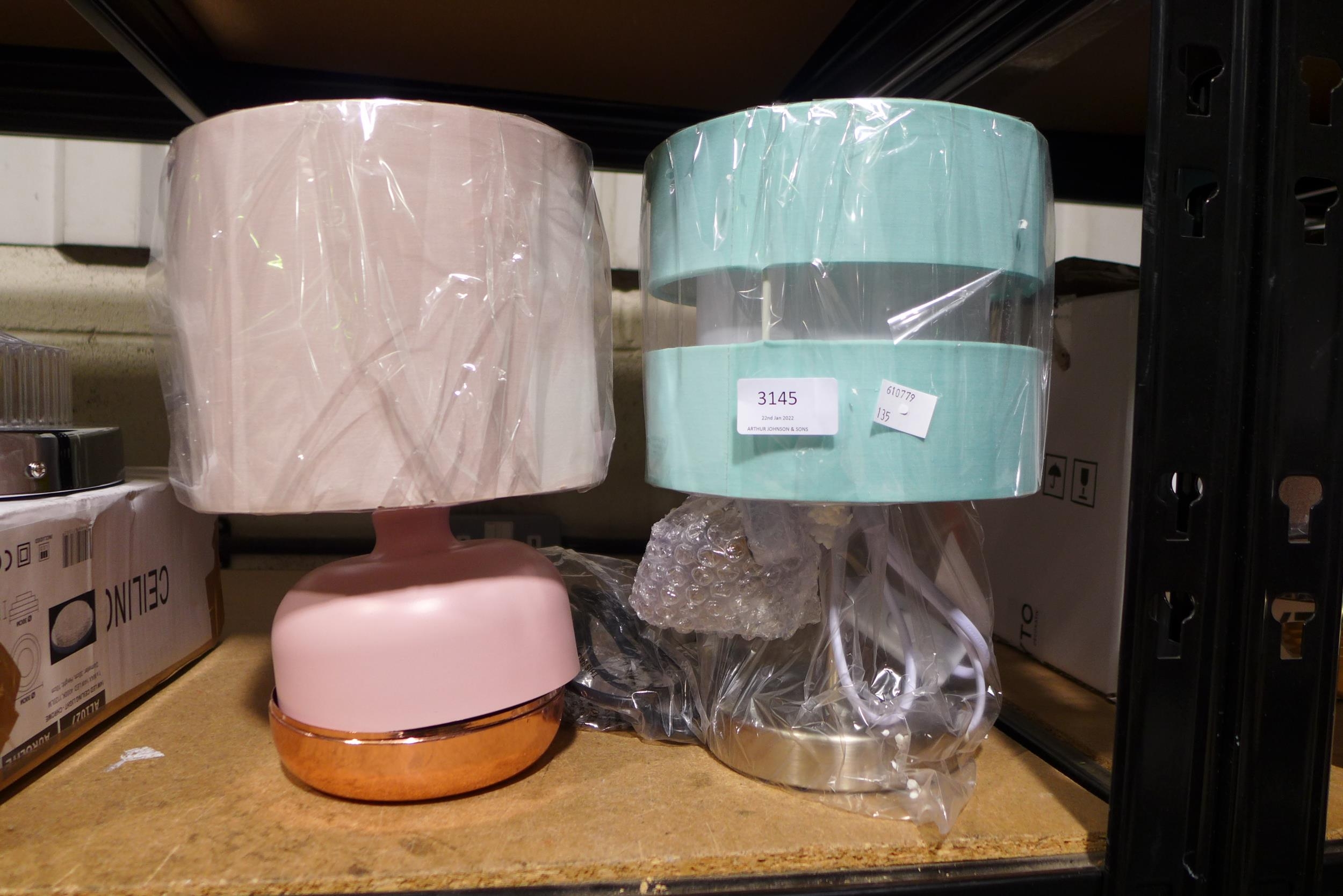2 Mini table lamps; one turquoise and one pink * this lot is subject to VAT