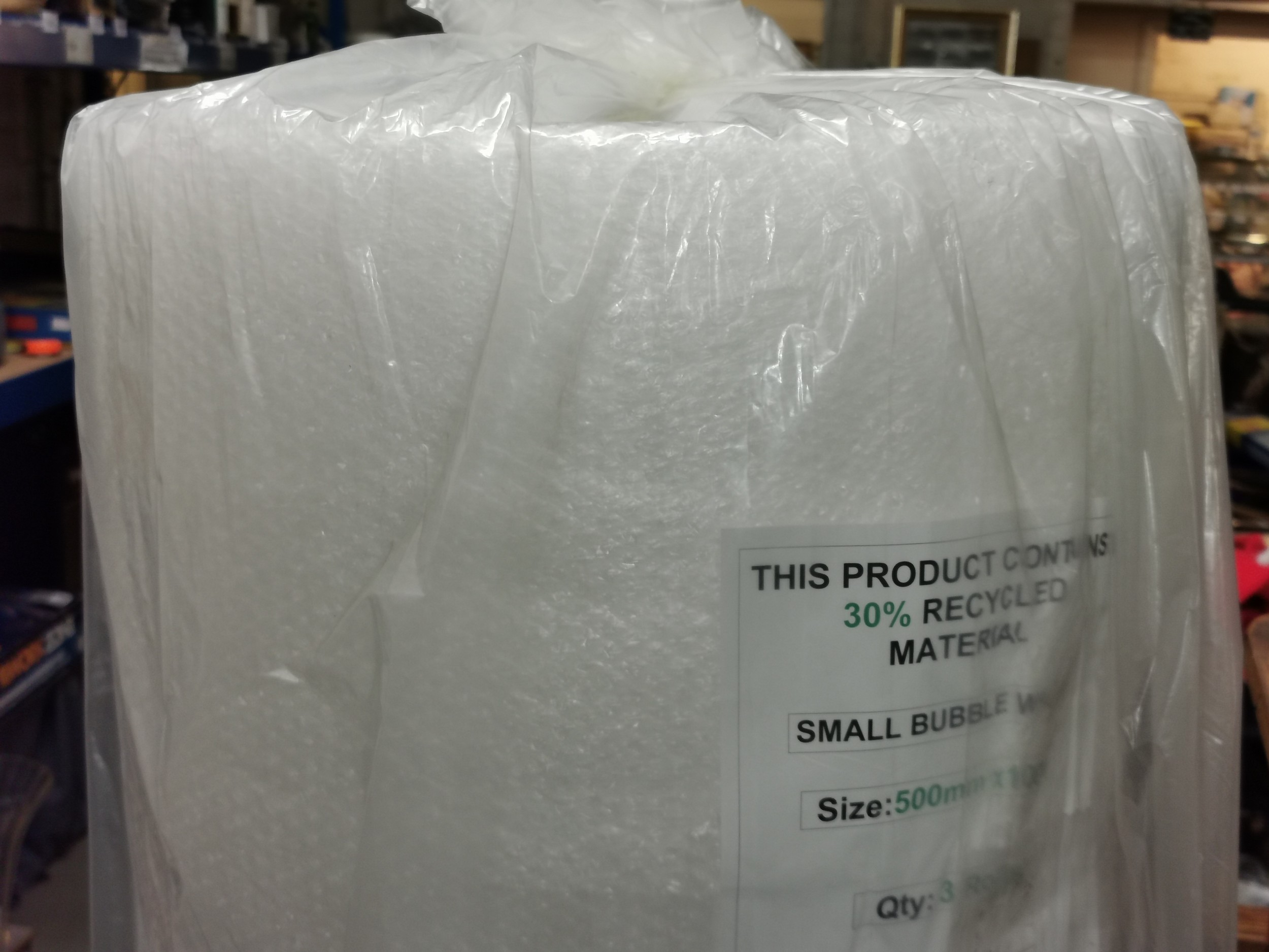 1 x 50 metre roll of 500 mm wide clear small bubble packing wrap - made from 30% recycled material