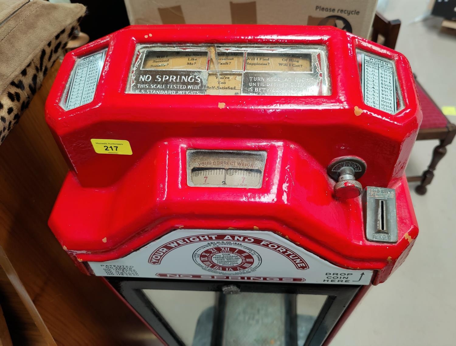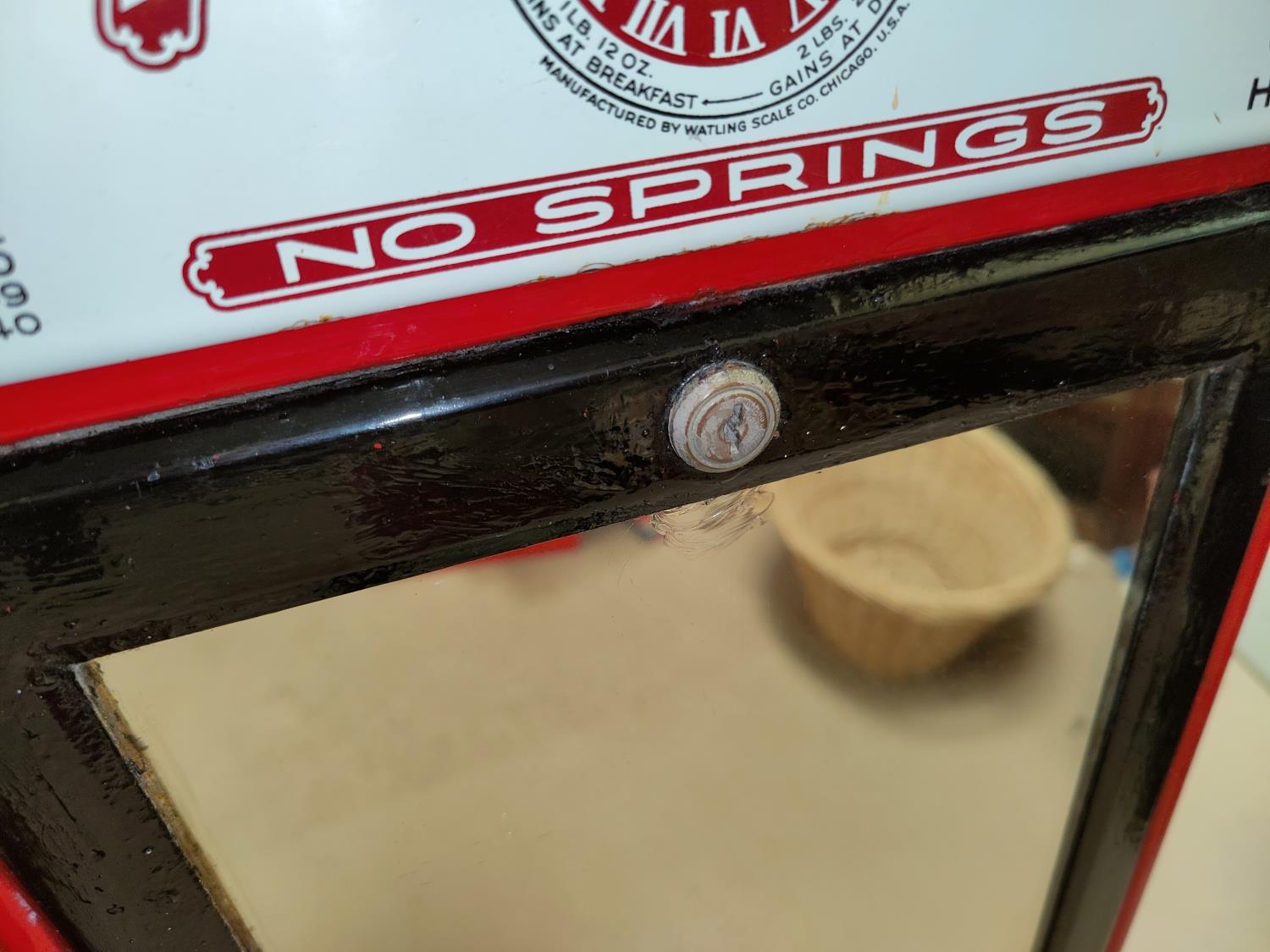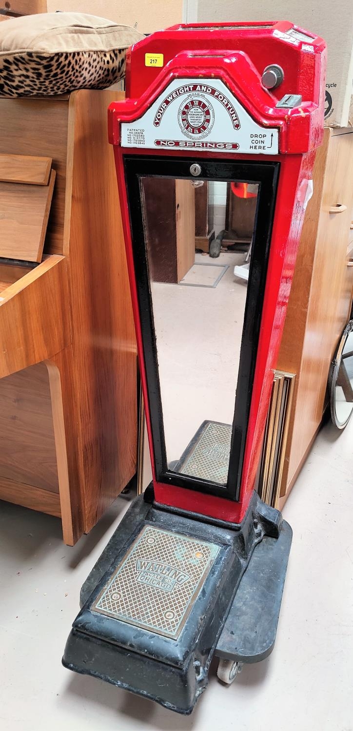 A large vintage Our Weight and Fortune Set of Scales by Watling Scale Co Chigcago, no key, height 125cm