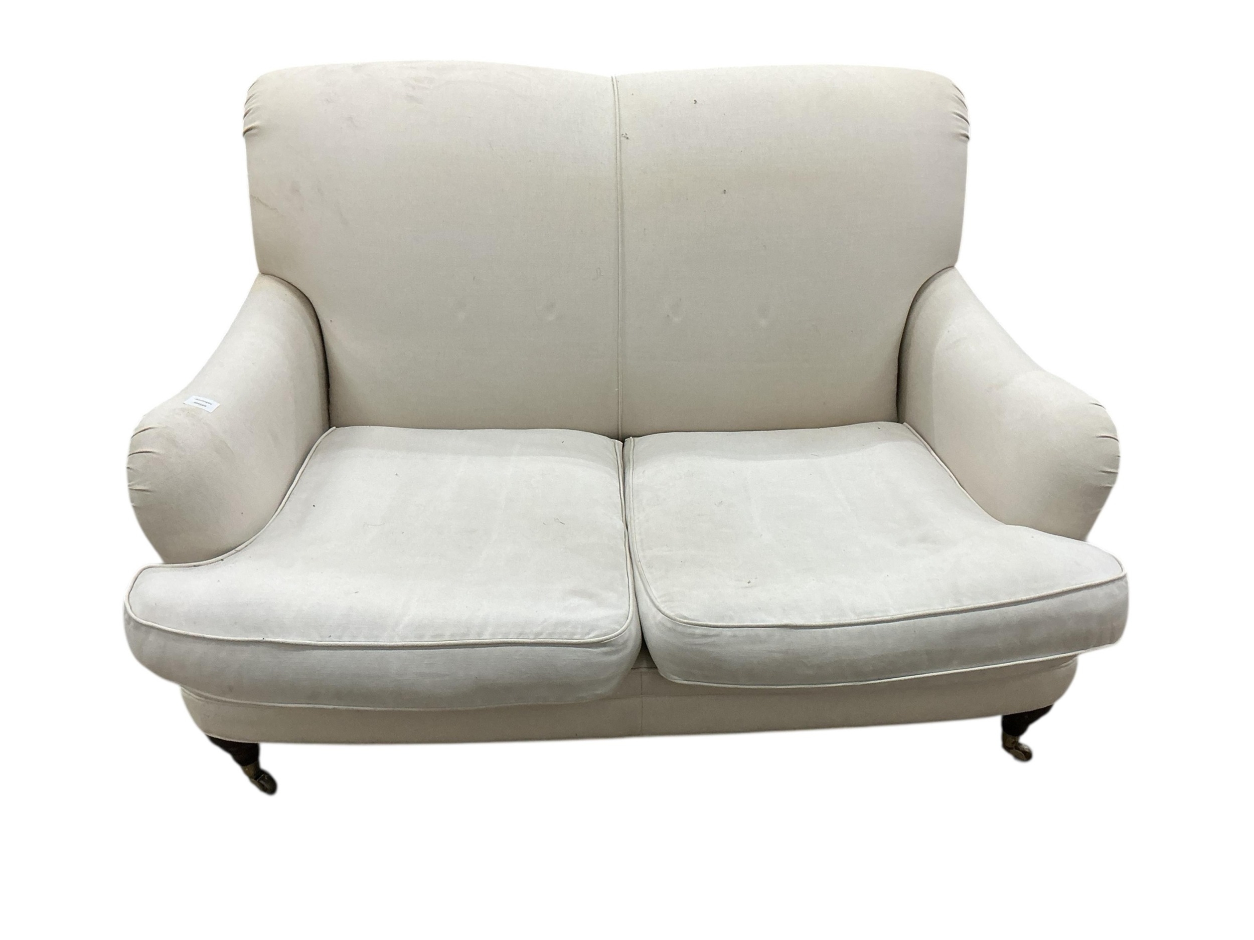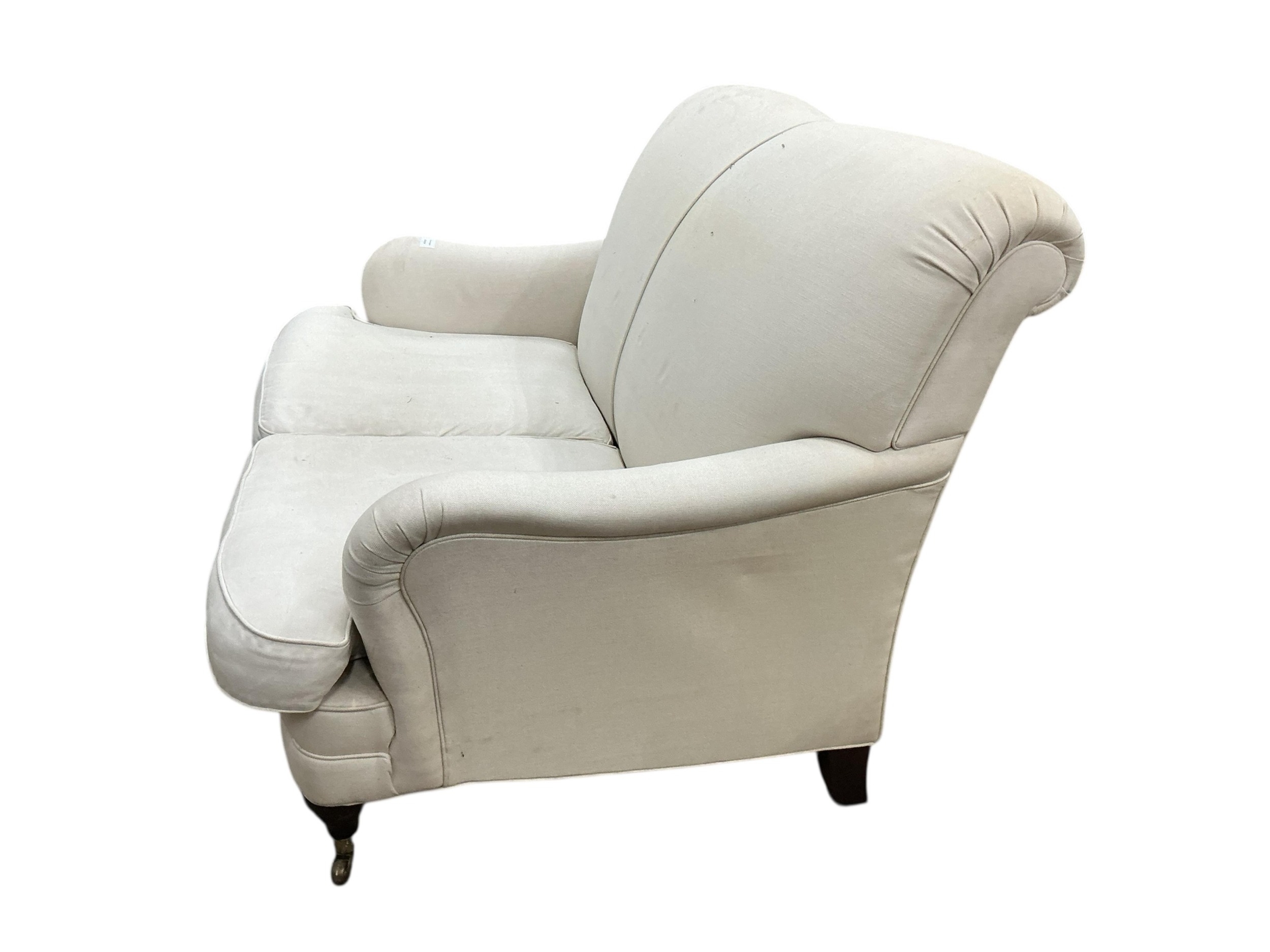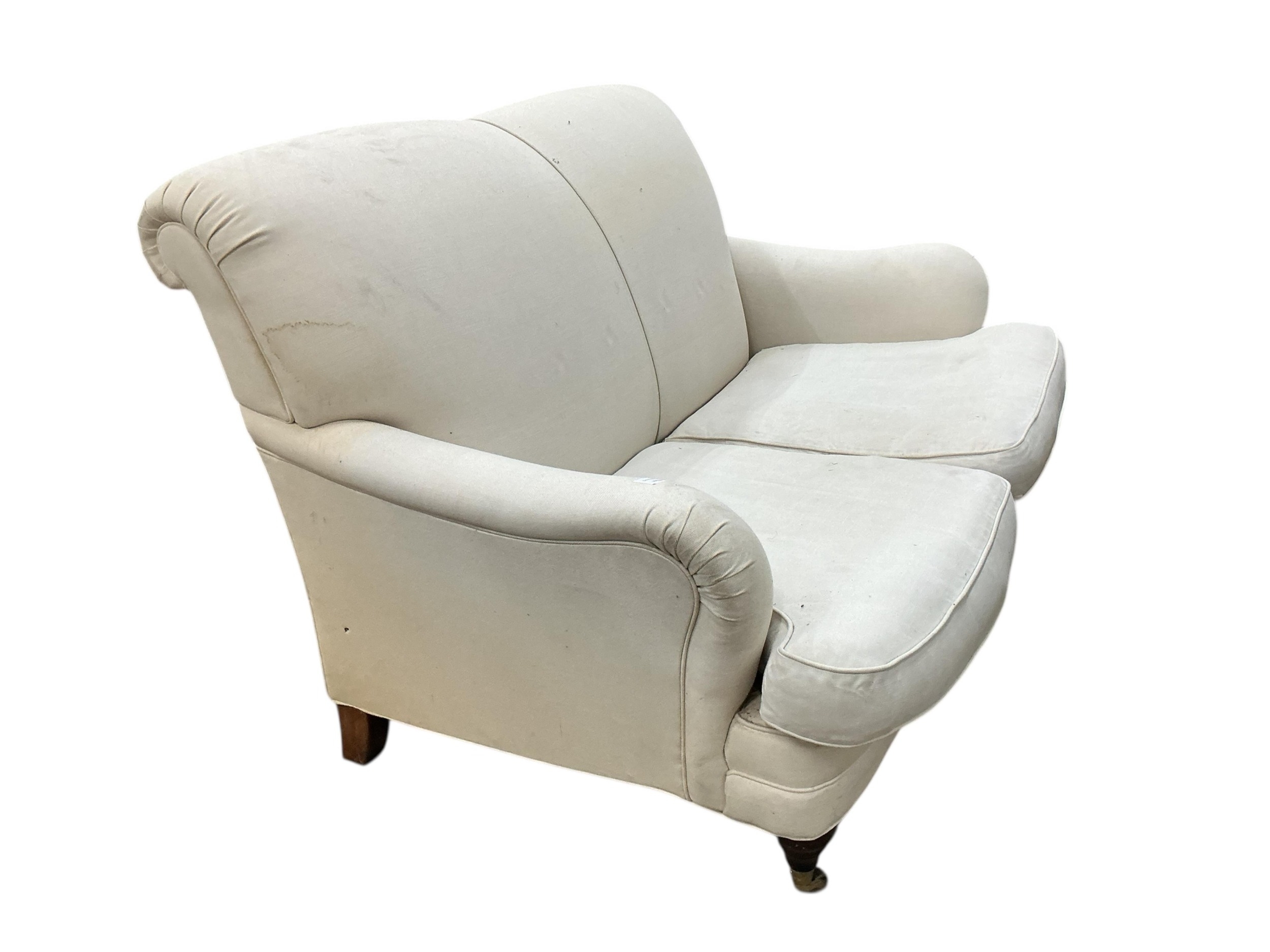 A Contemporary Howard style upholstered two seater settee, width 136cm, depth 96cm, height 88cm