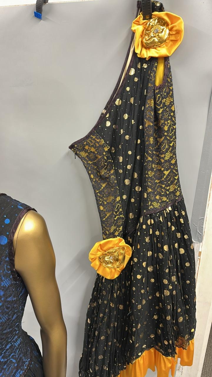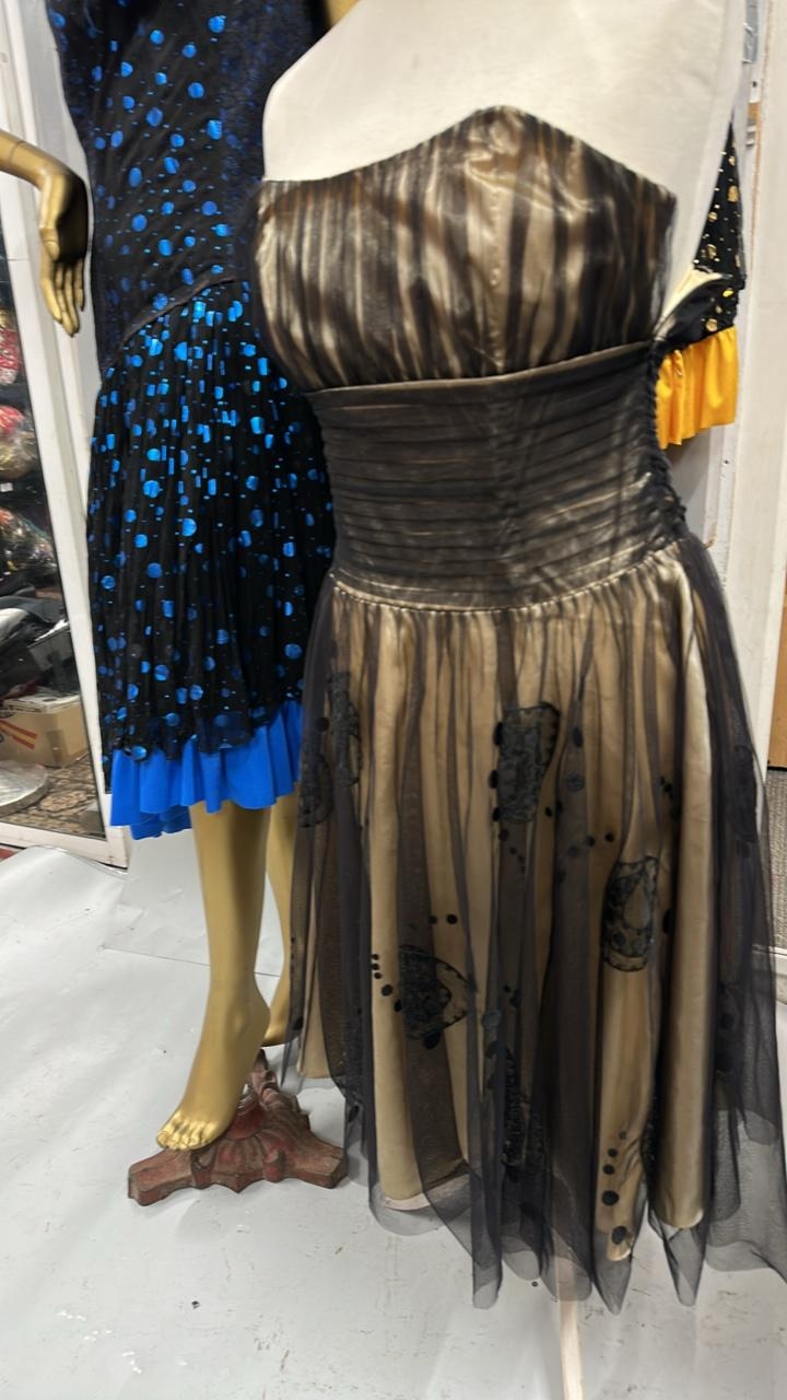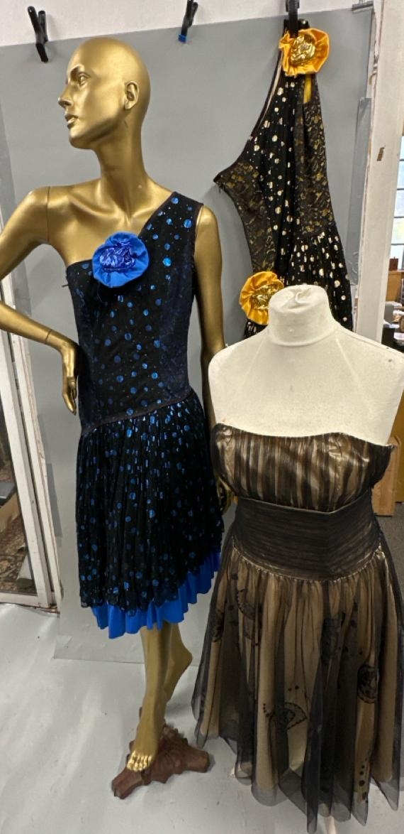 Three stage worn dresses including two of similar design / Rail 3
