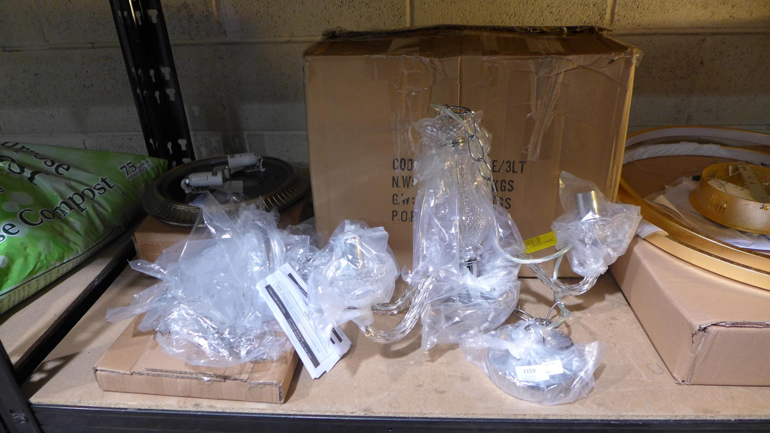2 Misc. light fittings:- one flush mounted and one 3-way pendant chandelier * This lot is subject to VAT