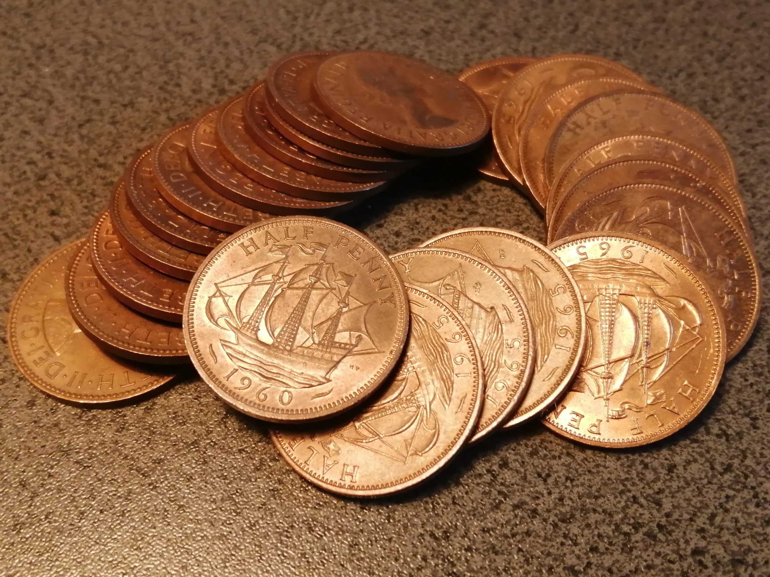 Collection of halfpennies 1960 x1, 1963 x2, 1964 x 10 and 1965 x11 all extremely fine or better