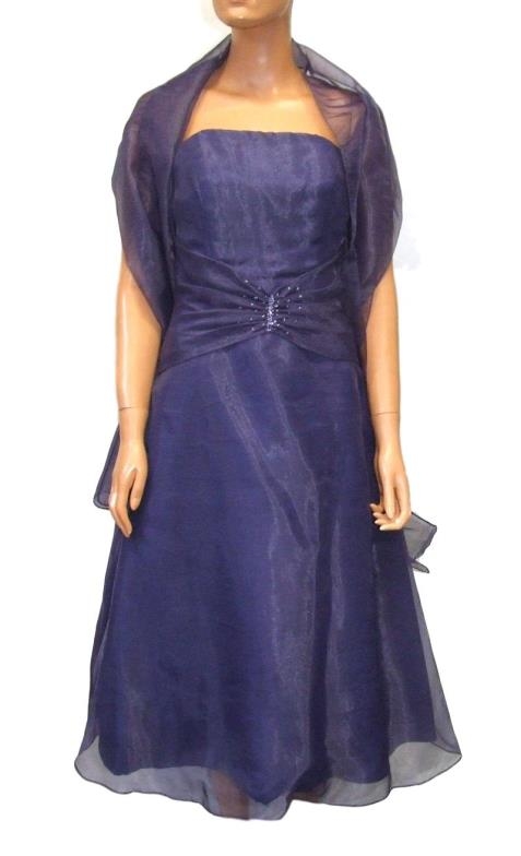 Emily Fox Purple Evening/Prom Dress with matching shawl, labelled size 14