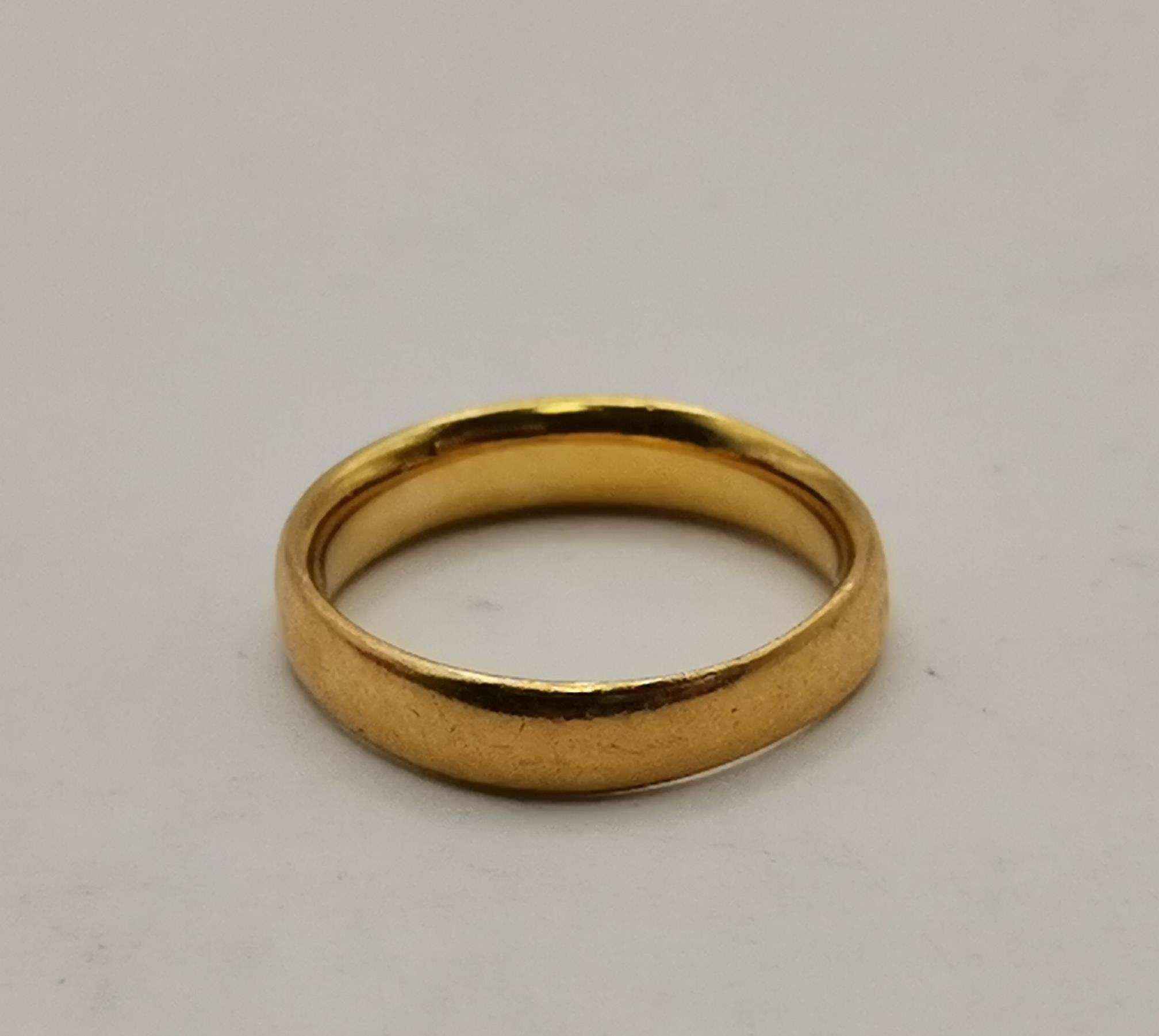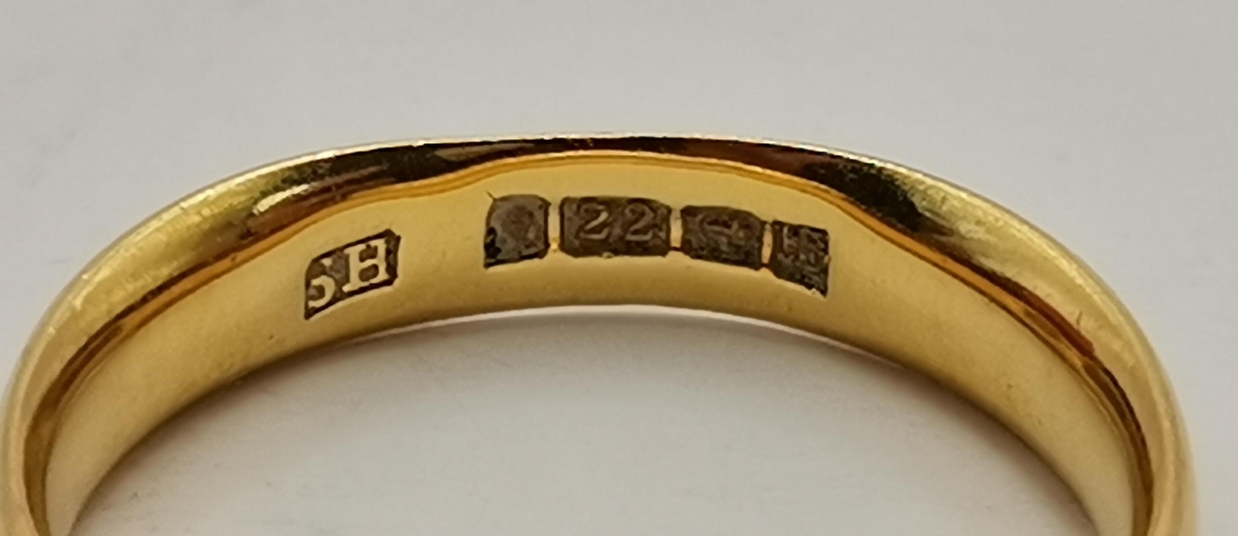 A 22 carat gold band ring, hallmarked Birmingham. Ring size H1/2, 3.5g