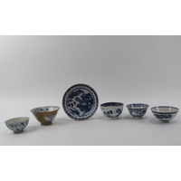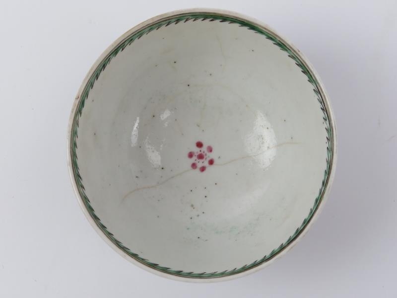 Condition report: Polychrome cup and saucer with chip/hairline as illustrated. The other cup and saucer in good condition.
