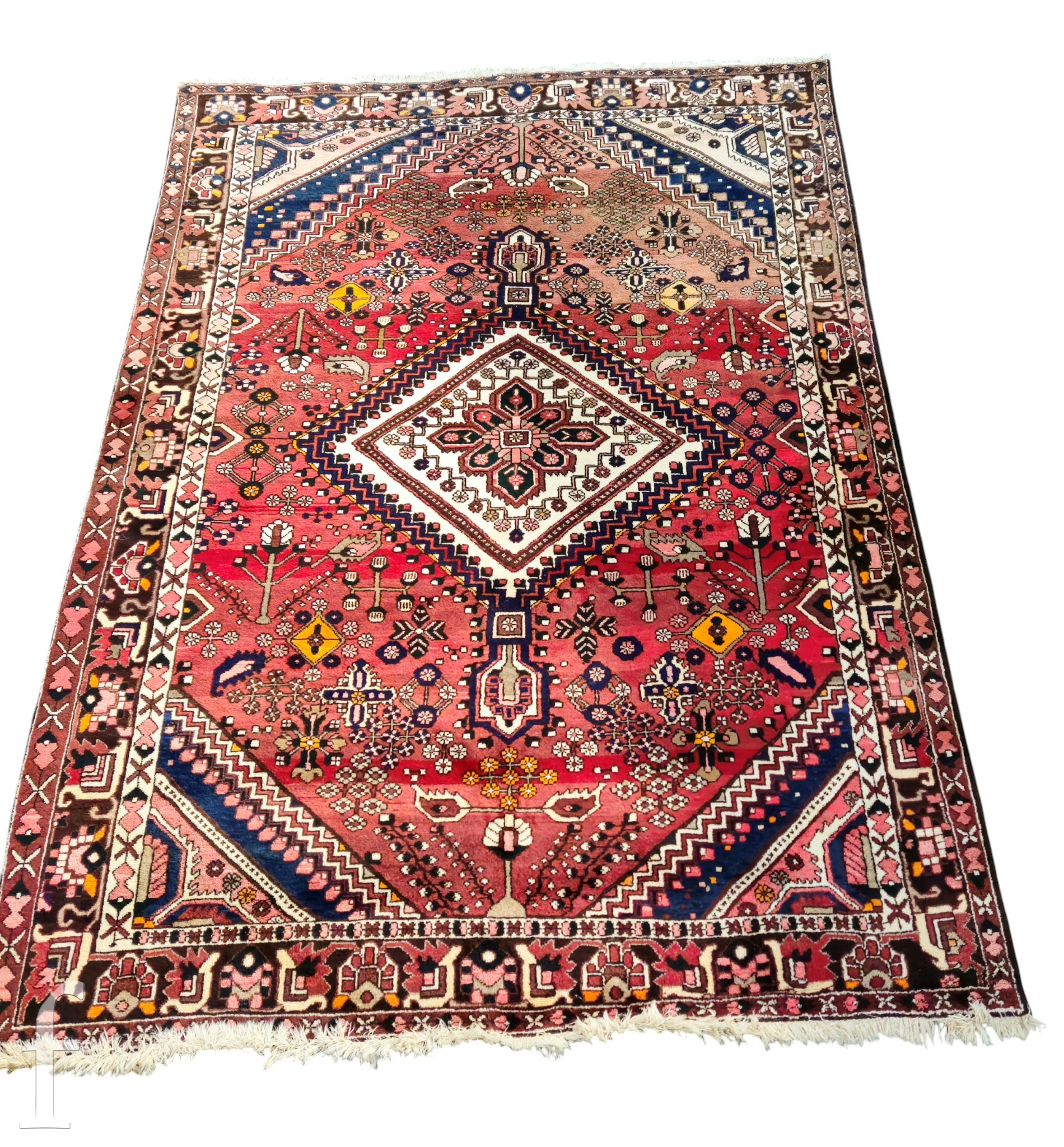 AMENDED DESCRIPTION A Bakhtiar carpet, central pole medallion on a leaf and floral head red ground, running multi border, amended dimensions 303cm x 214cm.