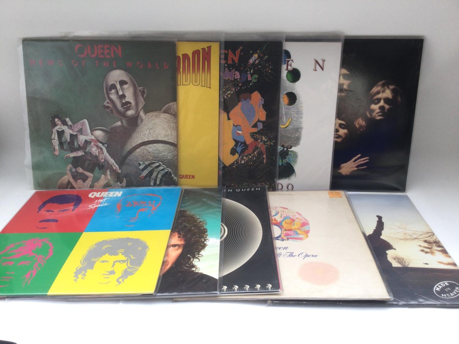 Ten Queen LPs comprising original and 180g pressings including 'Queen II', 'News Of The World', 'A Night At The Opera' and others.