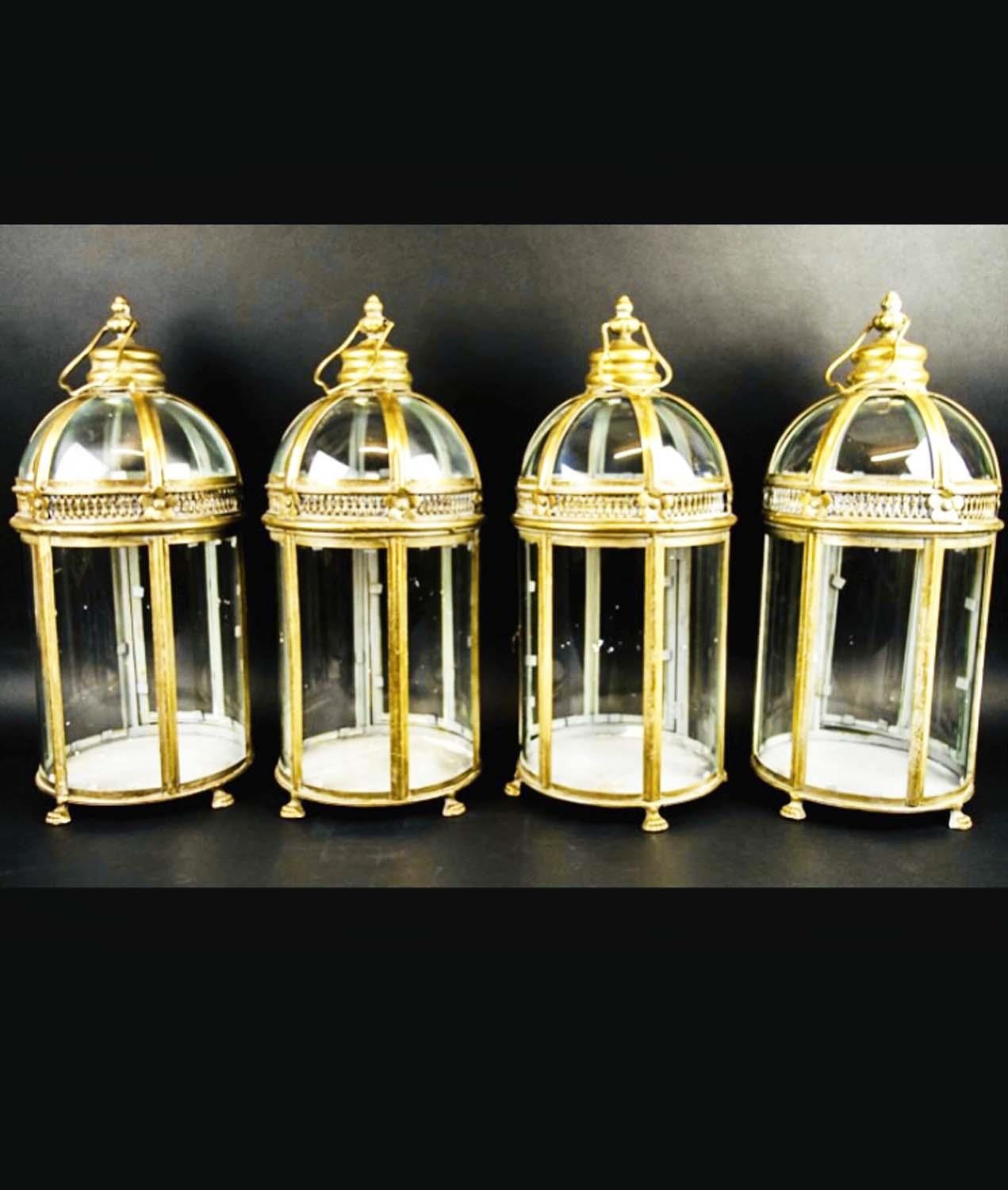 STORM LANTERNS, a set of four, Regency style, gilt metal, 46cm H x 19cm diam. (4)