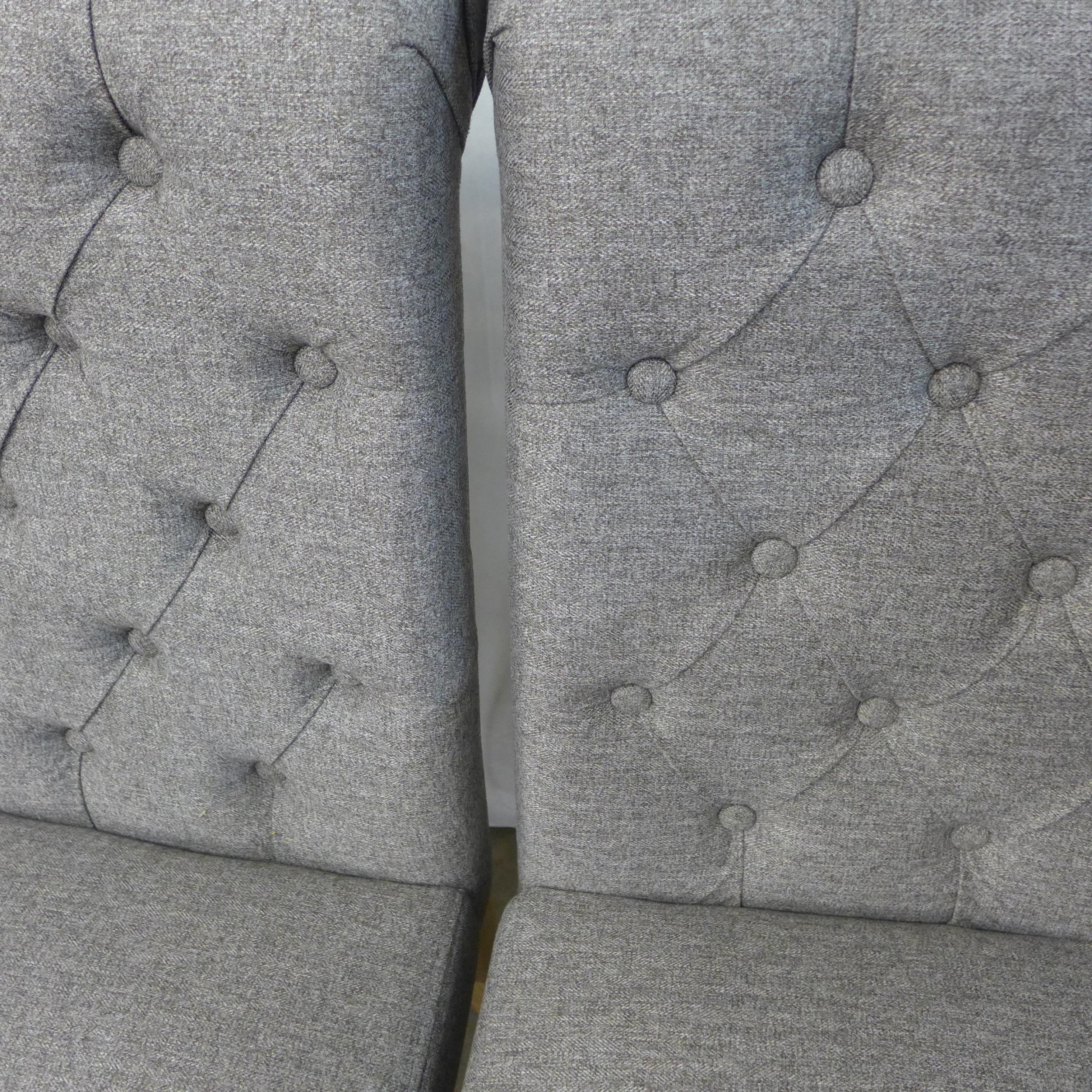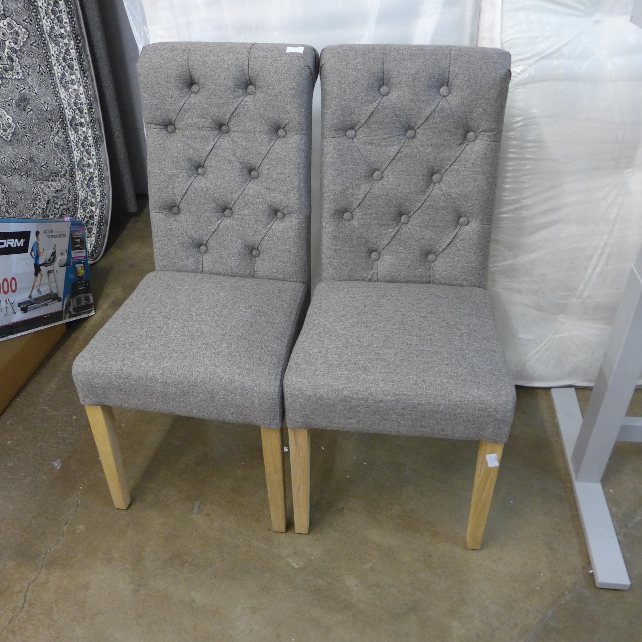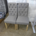 A set of two grey upholstered button back side chairs with oak legs * this lot is subject to VAT