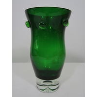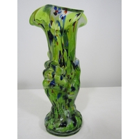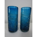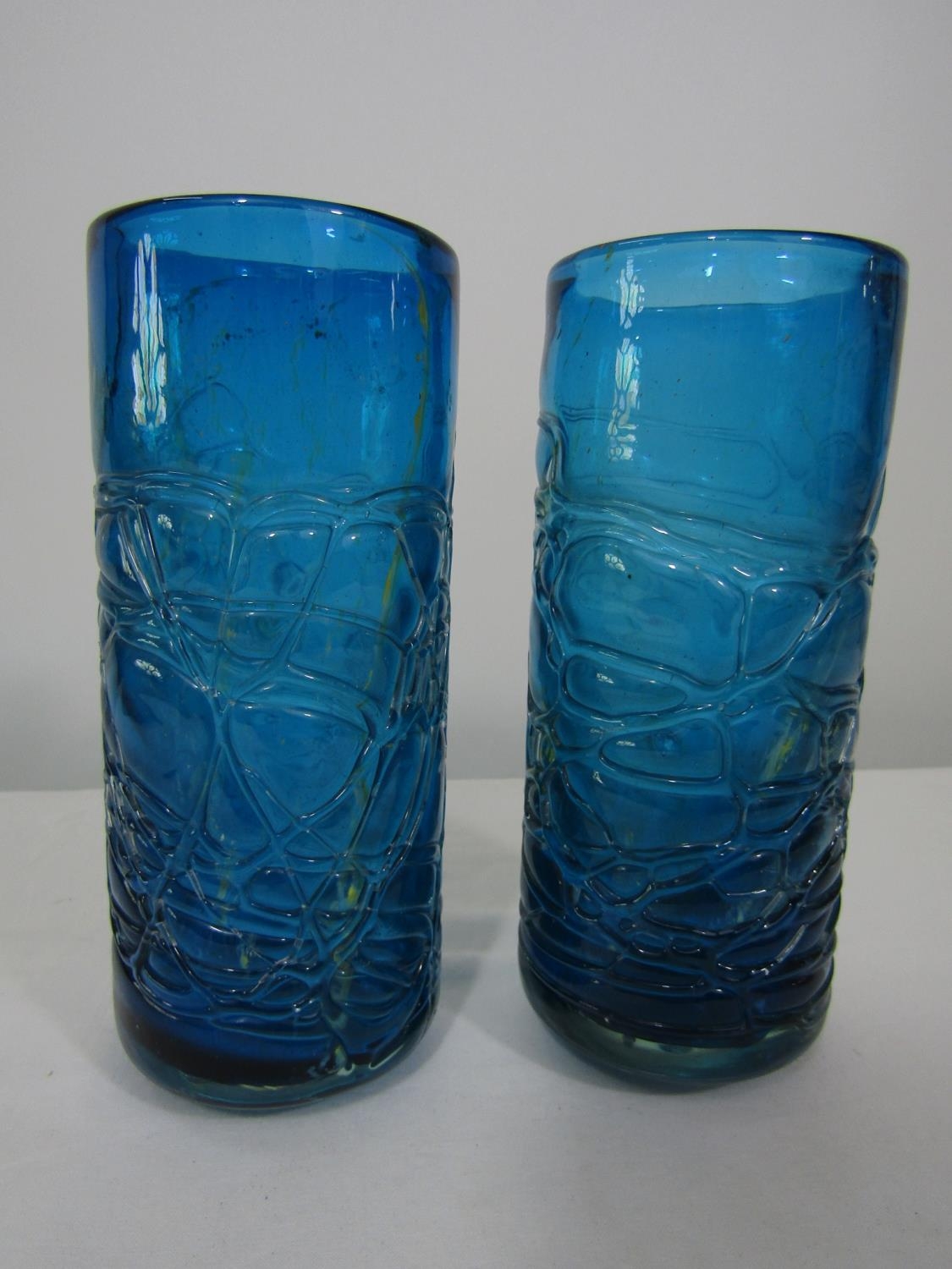 An unusual pair of Mdina type mottled glass vases with unusual cast finish, 21cm high