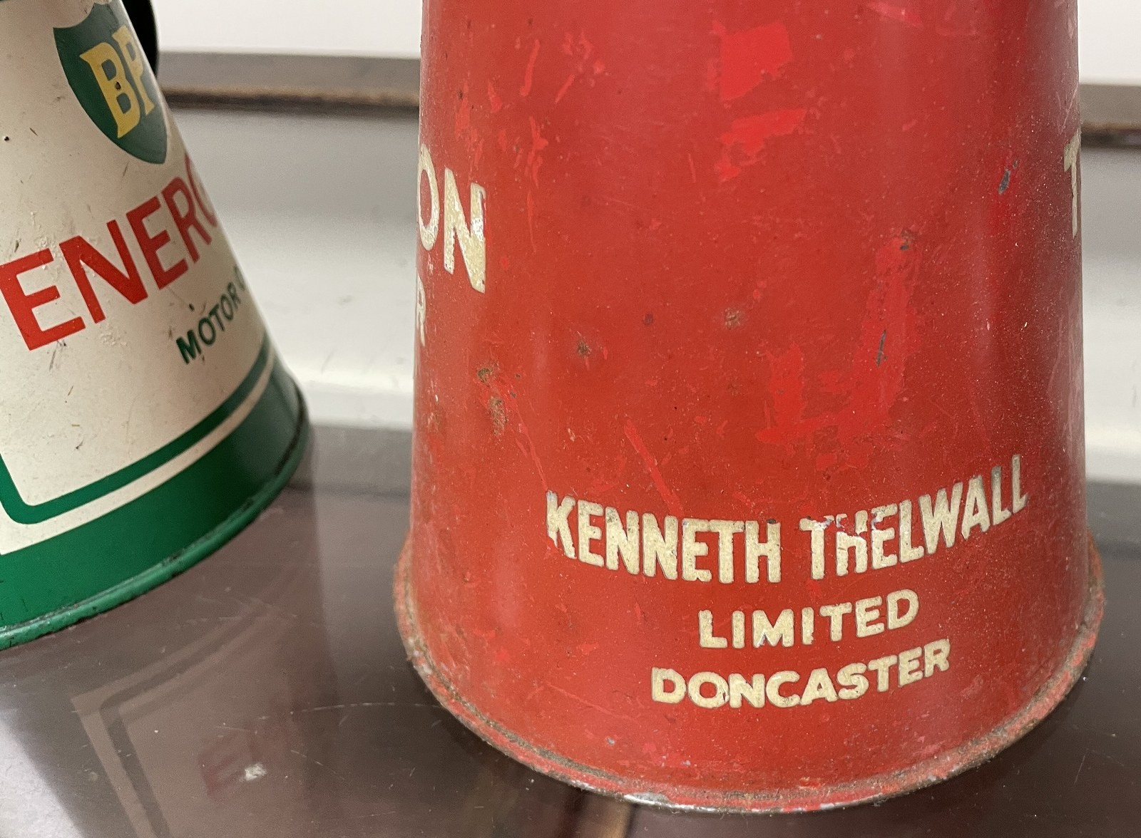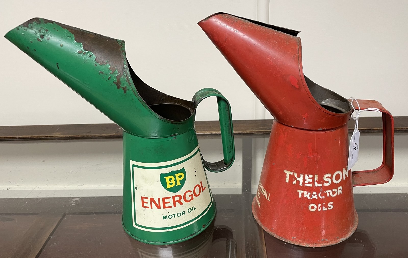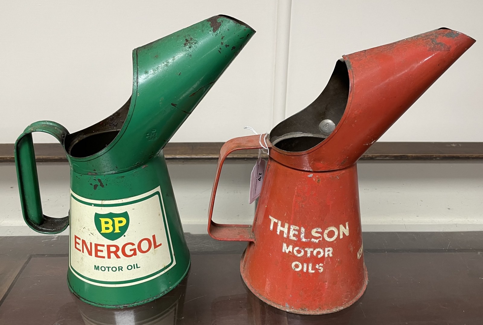 A Thelson Tractor Oils jug, 24.5 cm high, and a BP Energol Motor Oil jug (2)