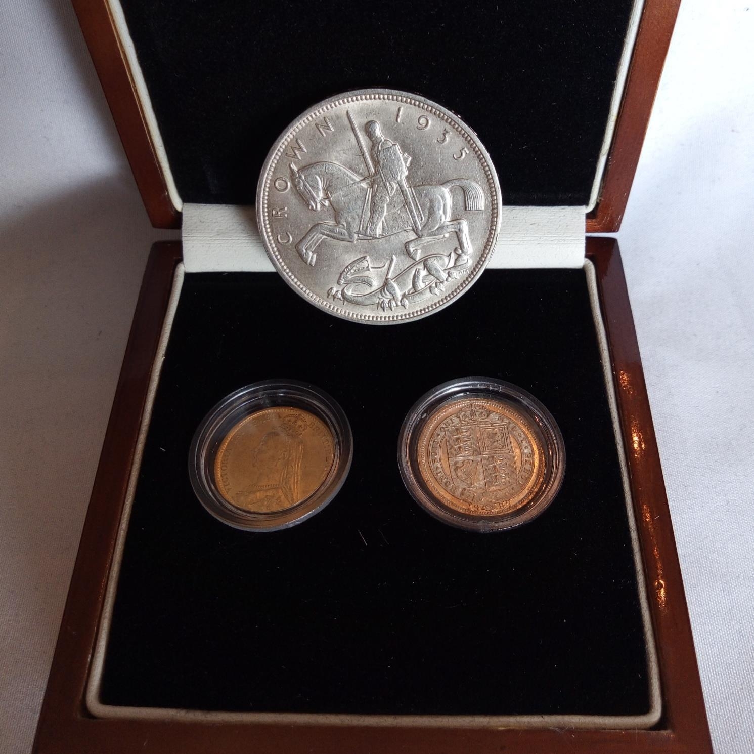 The 'withdrawn' silver sixpences series issued by The London Mint Office, together with a 1935 silver crown, in protective capsule and fitted wooden box, complete with certificate of authenticity.