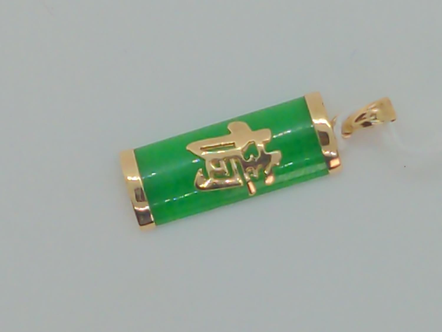 14ct gold and jade pendant, length including bale 30mm, gross weight 1.95 grams