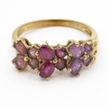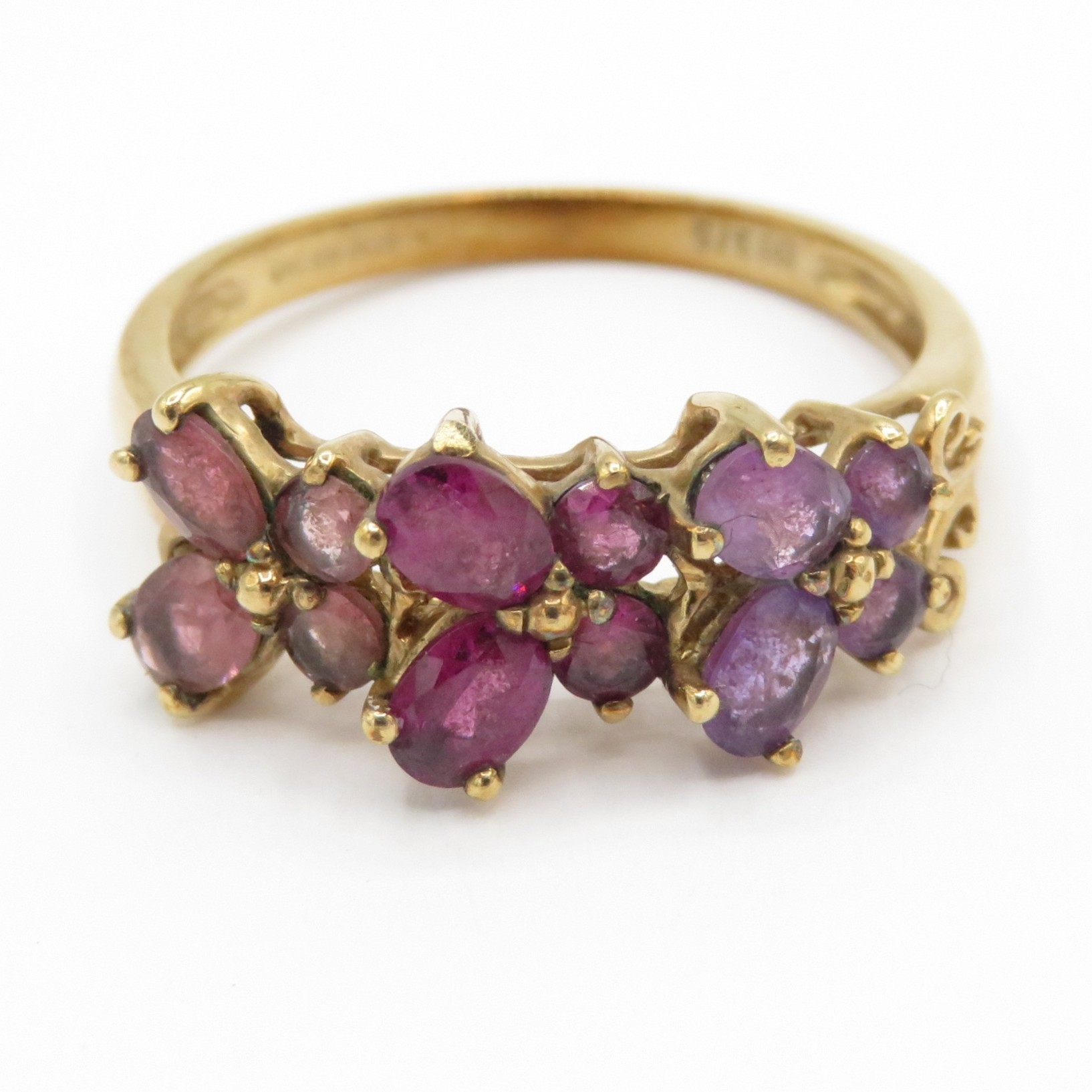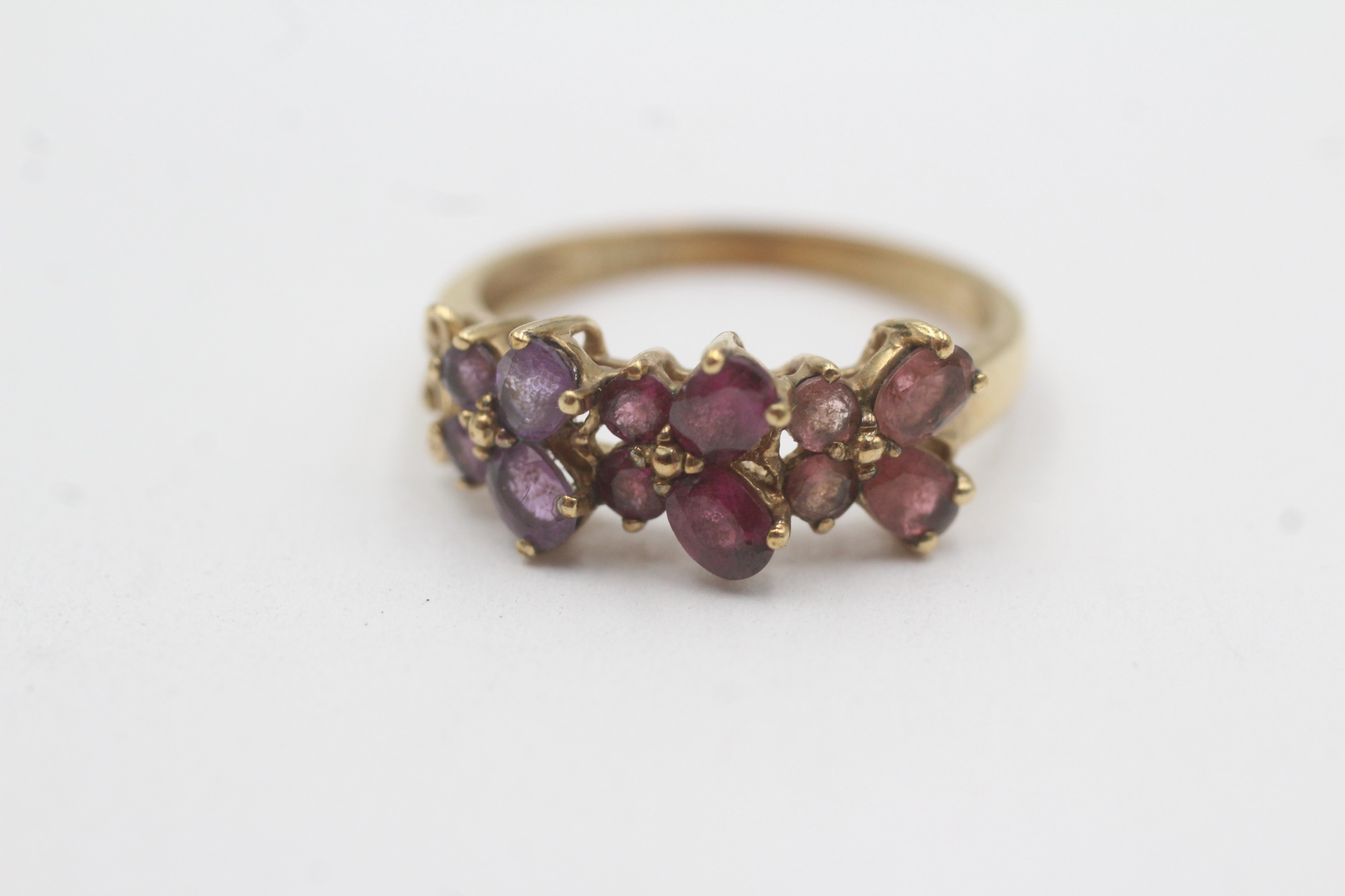 9ct gold amethyst garnet tourmaline butterfly ring (2.6g) Size Q