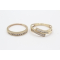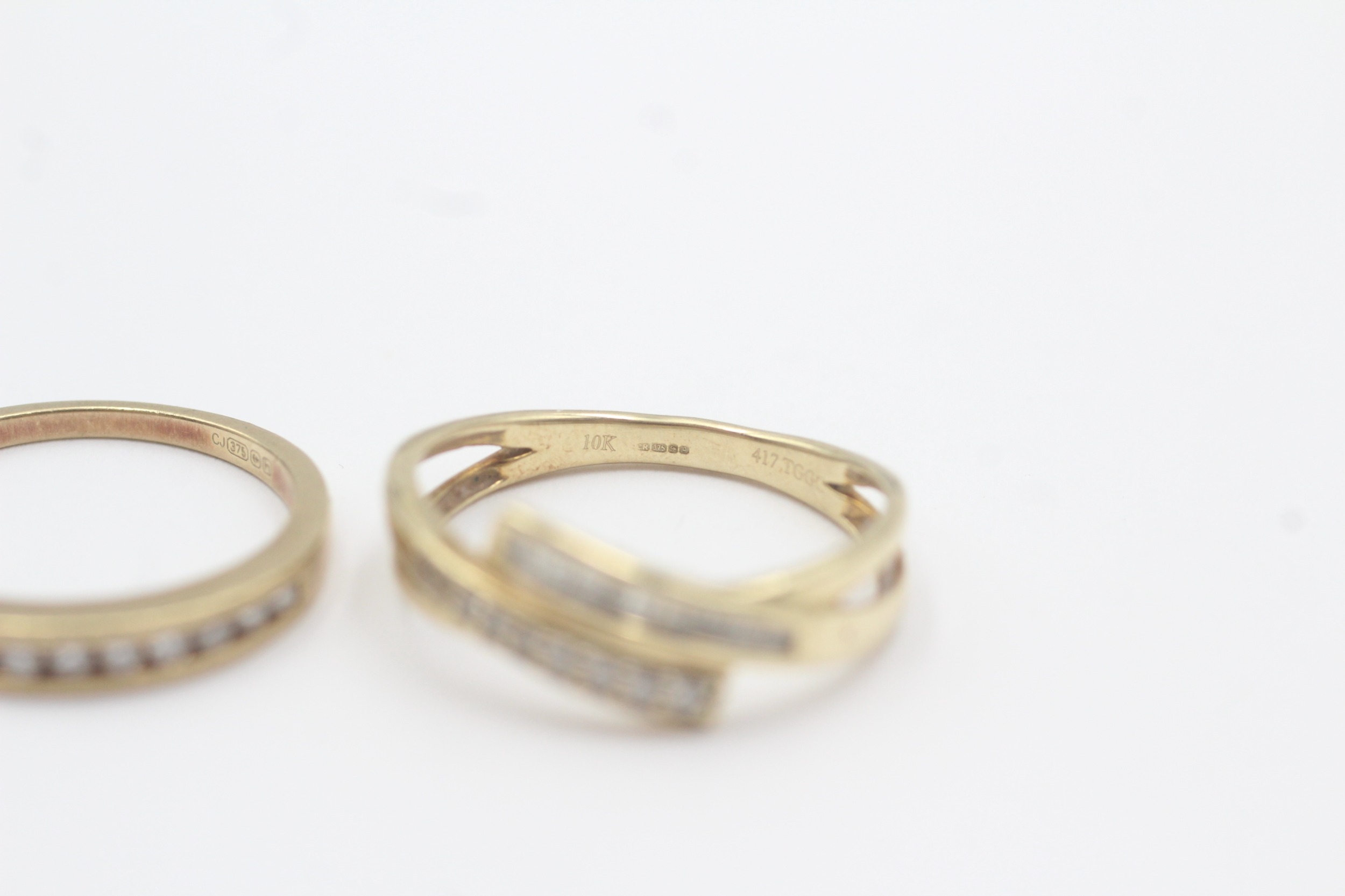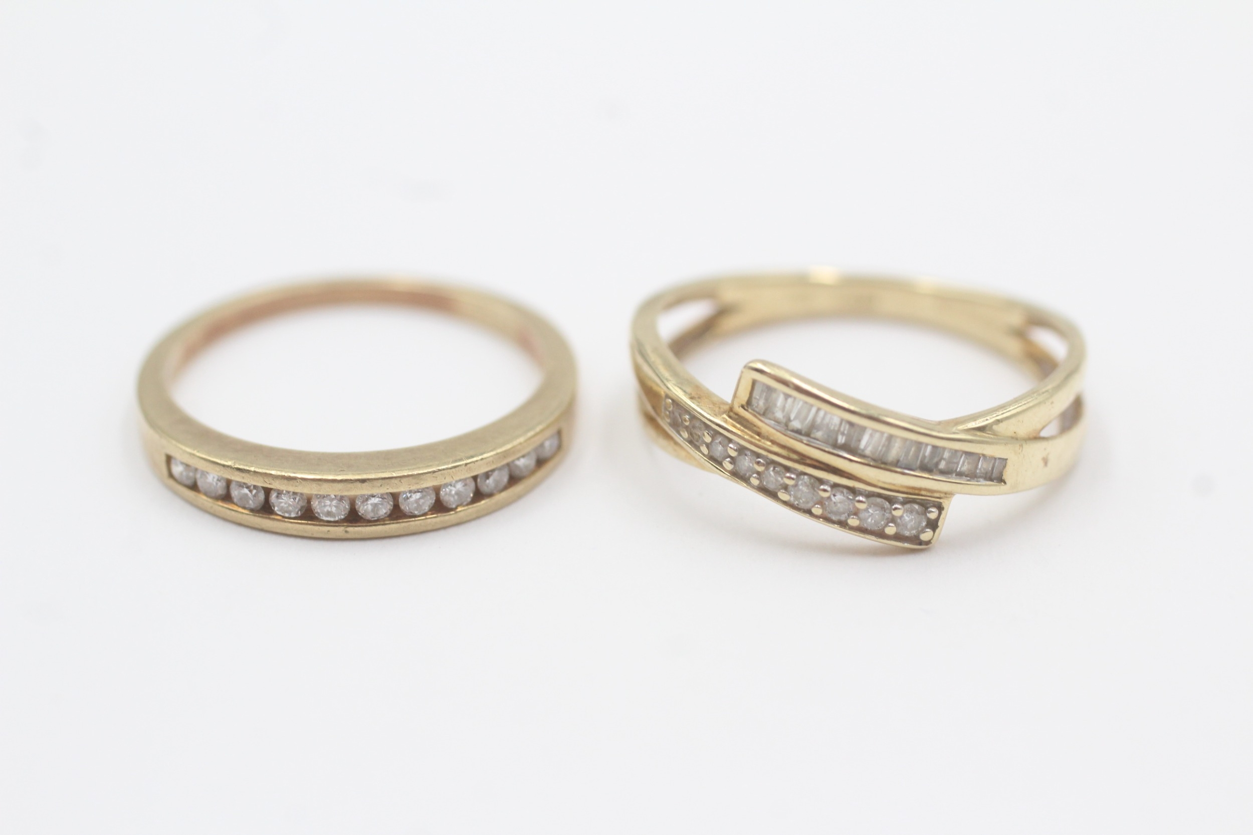 2x 9ct gold diamond half eternity ring (3.8g) Size L + N