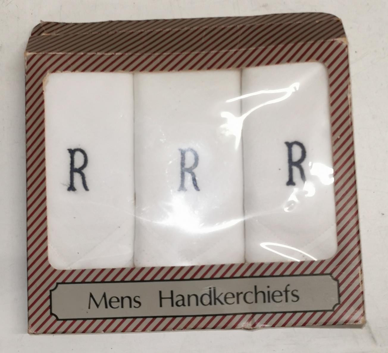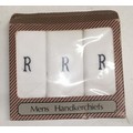Boxed unused gents retro handkerchief triple pack with R monogram