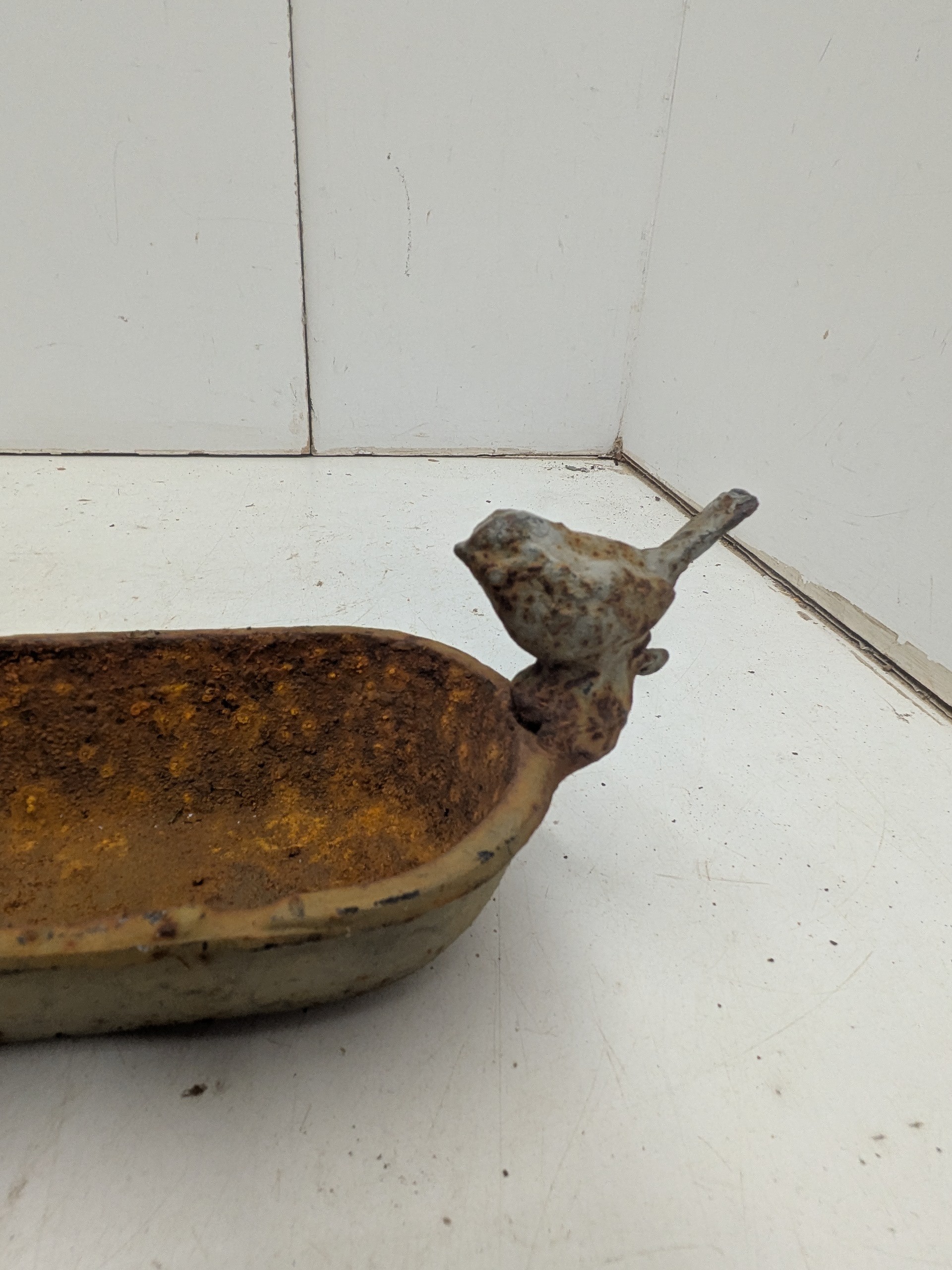 A small vintage cast iron bird bath