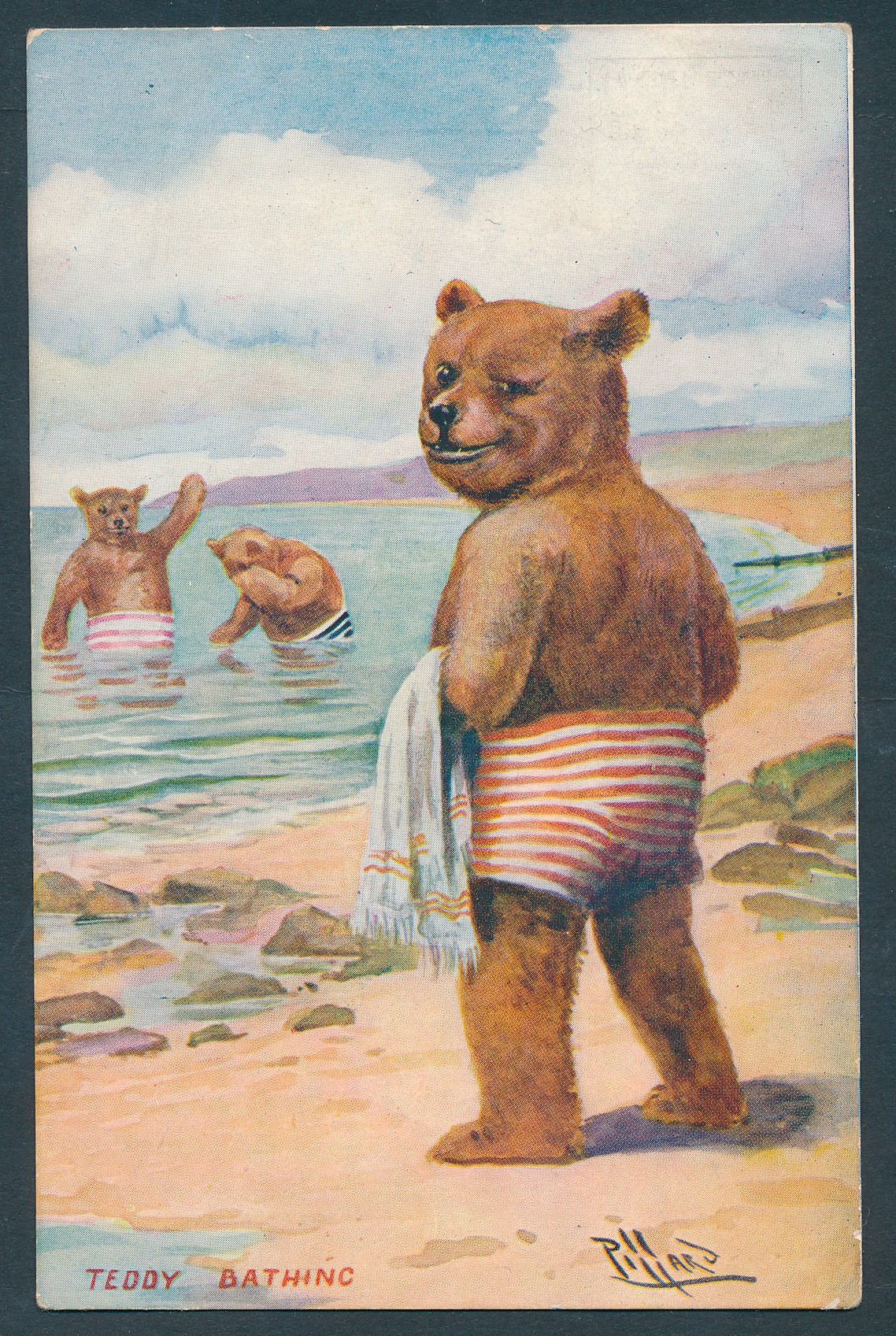 Misc. coln. in modern and old album. Teddy bears, cats, dogs, ponies, birds, children, greetings, large letters, language of flowers etc. Qty. approx. 200 (2V)