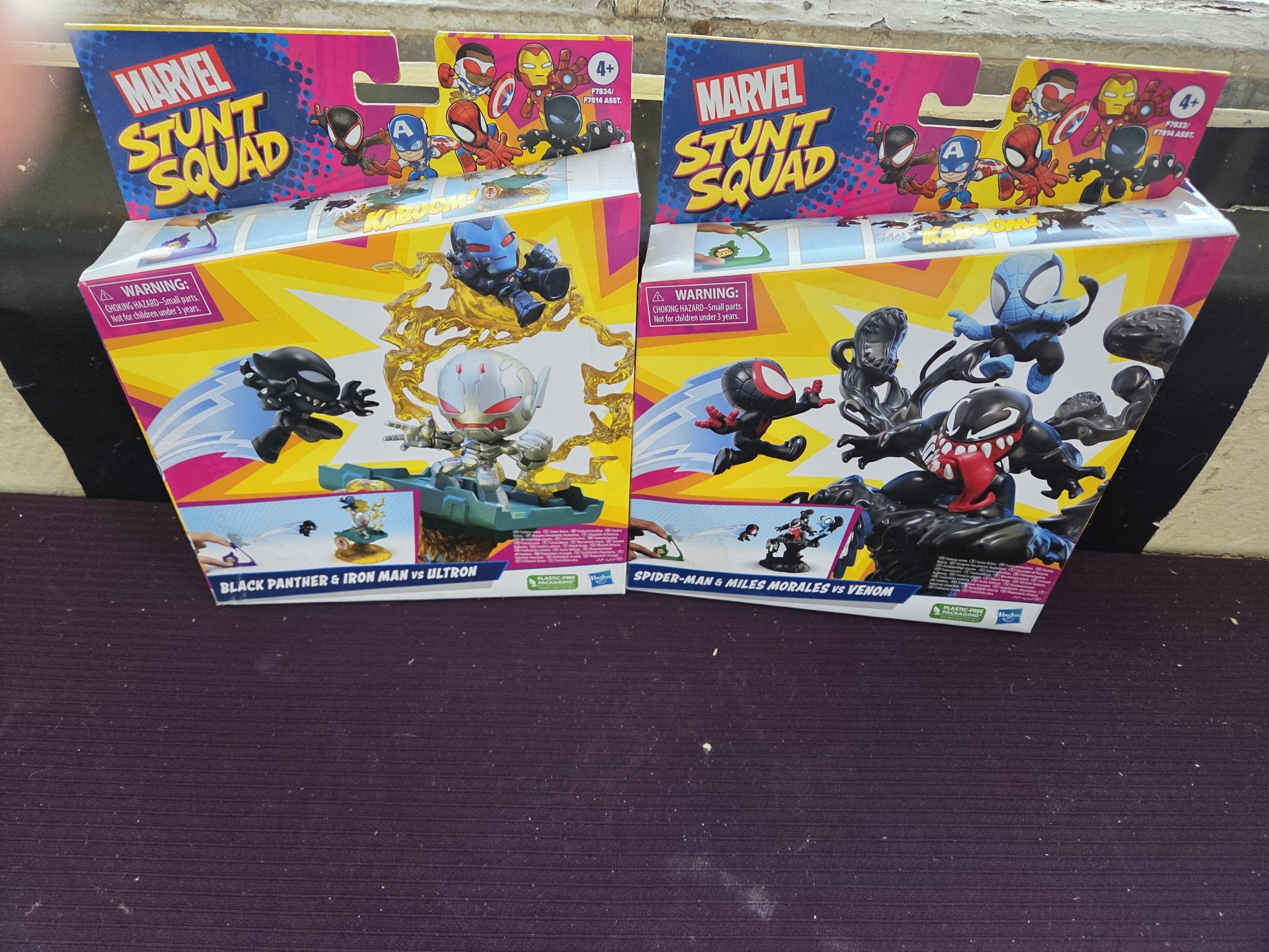A Pair of Hasbro Marvel Stunt Squad Action Figure Playsets
