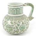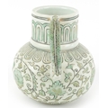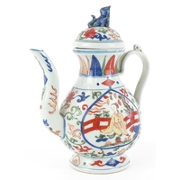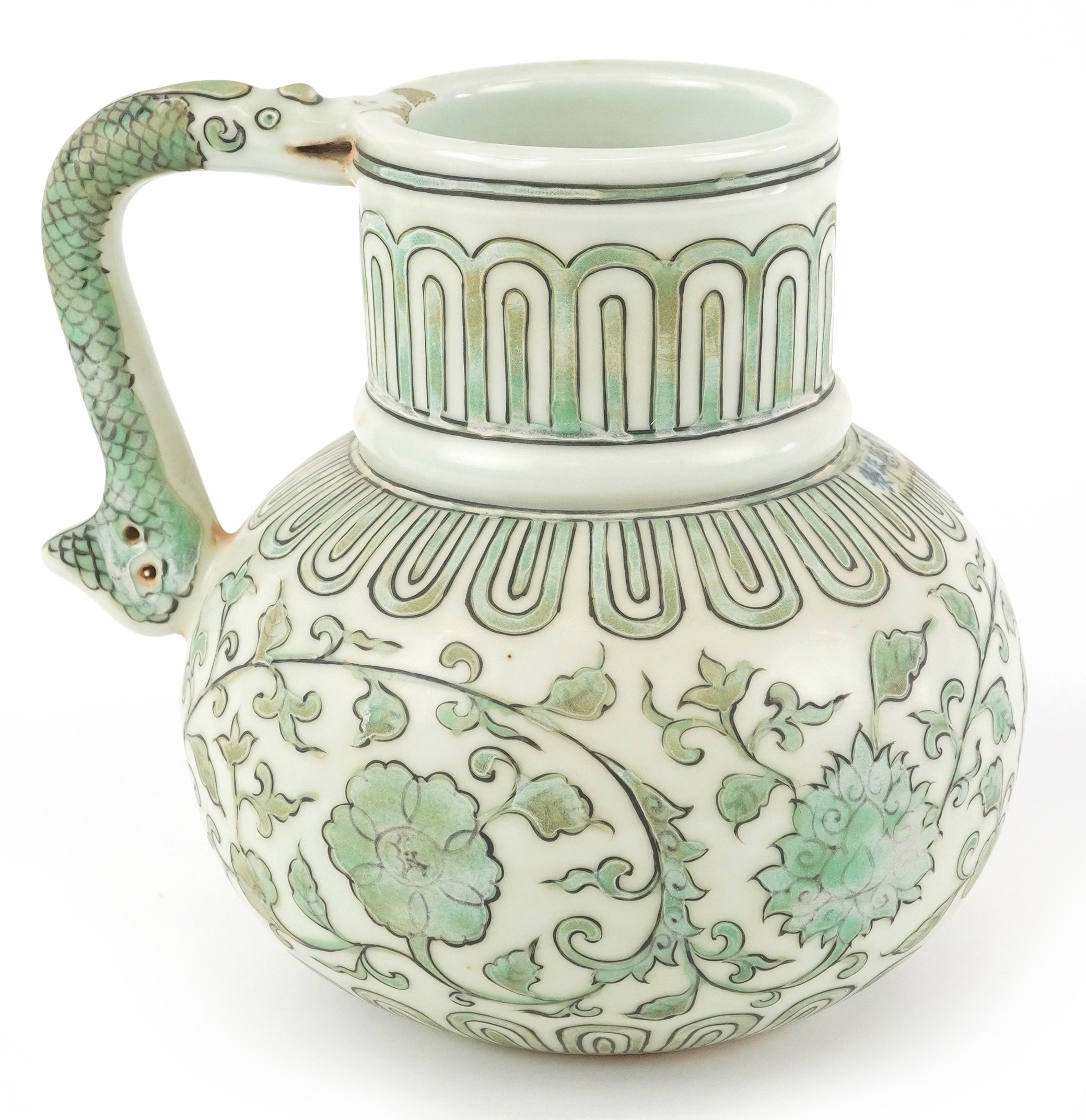 A Chinese porcelain ewer with fish handle, hand painted with...