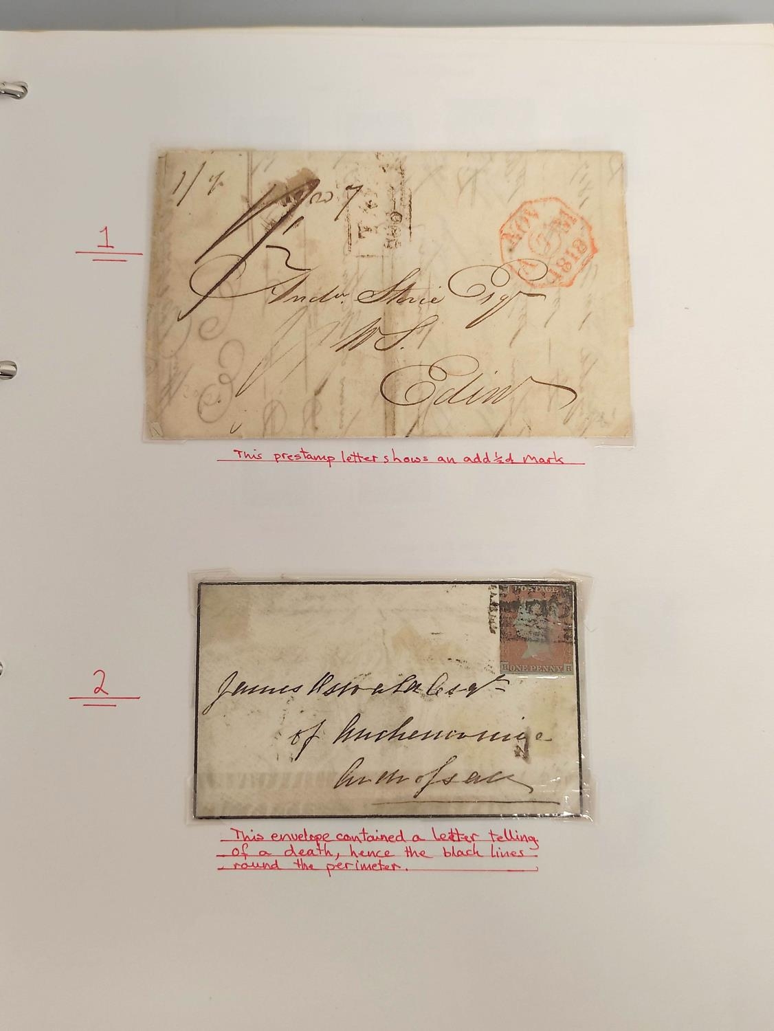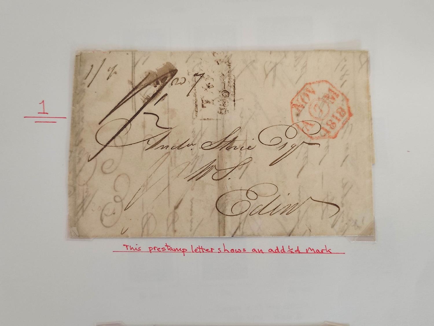 Great Britain. Folder containing British & regional issues to include a 1934 halfcrown stamp, early 19th century letter postmarked for November 1818 & early Victorian imperforated issues.