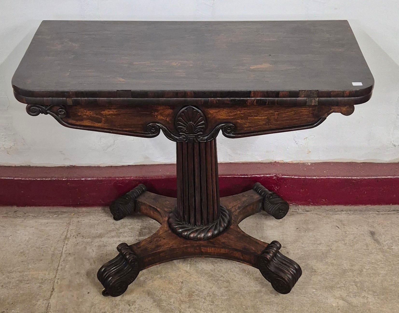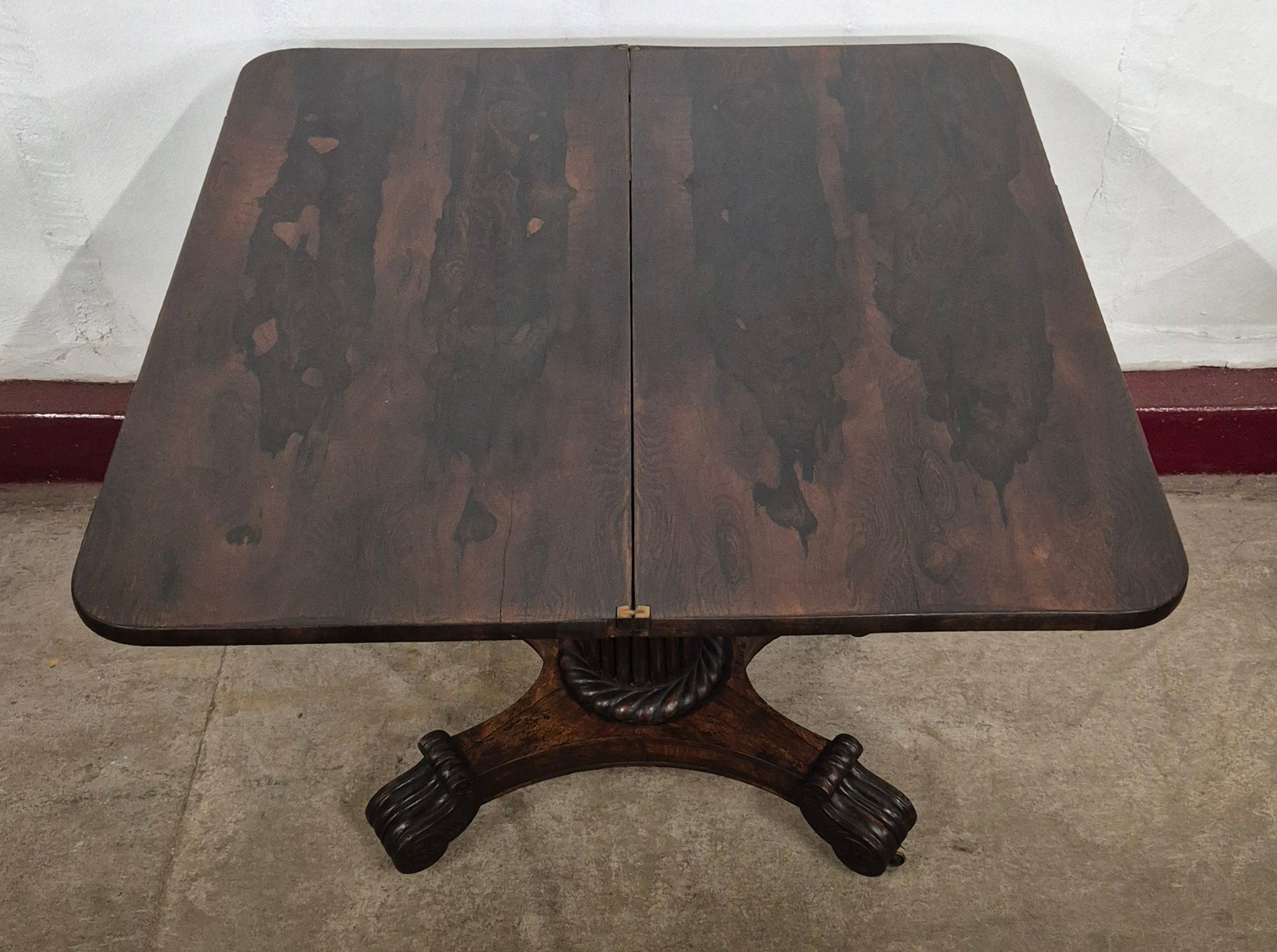 A Regency rosewood D-shaped fold over tea table