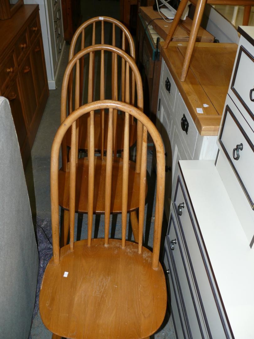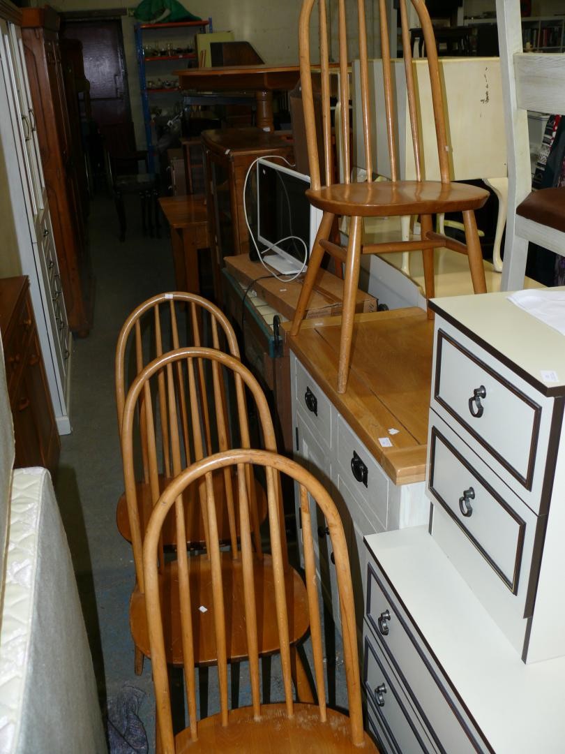 SET OF 4 ERCOL STYLE STICK BACK DINING CHAIRS