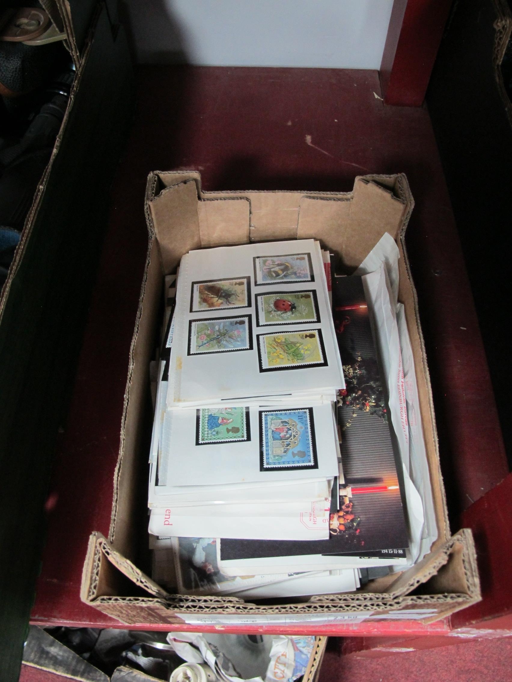 Stamps, primarily GB mint stamps in sleeves, together with assorted first day covers etc. One box.