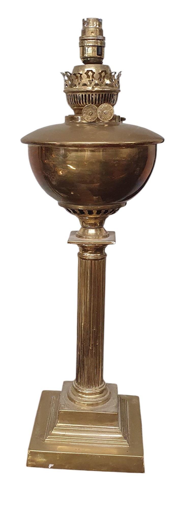 A 19th Century Brass Oil Lamp converted to a table lamp. H 52 cm approx.