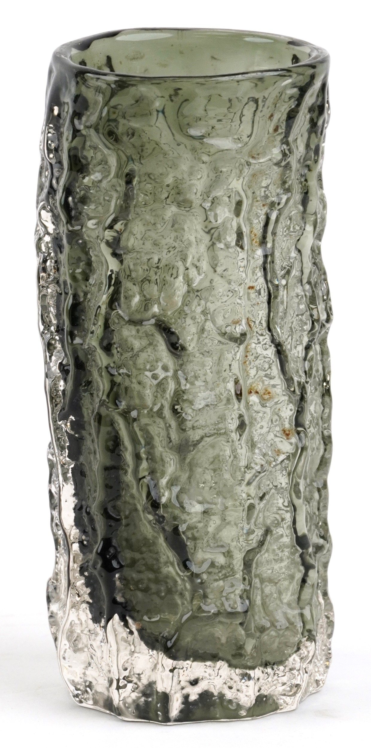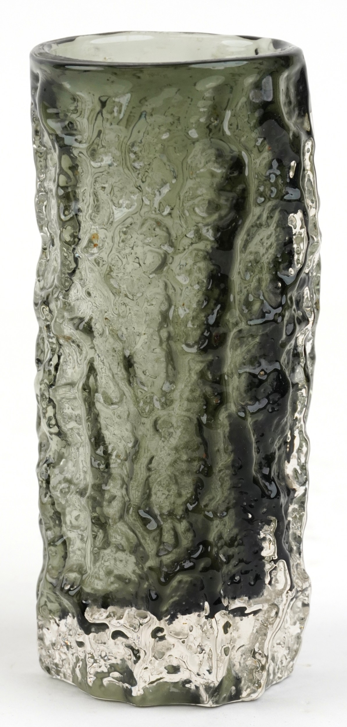 A Whitefriars bark design cylindrical vase, 19cm high.