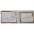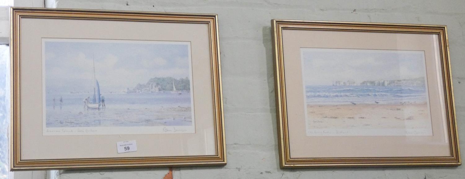 A pair of gilt framed coloured prints: Brownsea Island and Old Harry Rocks by Robin Davidson