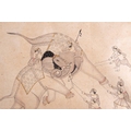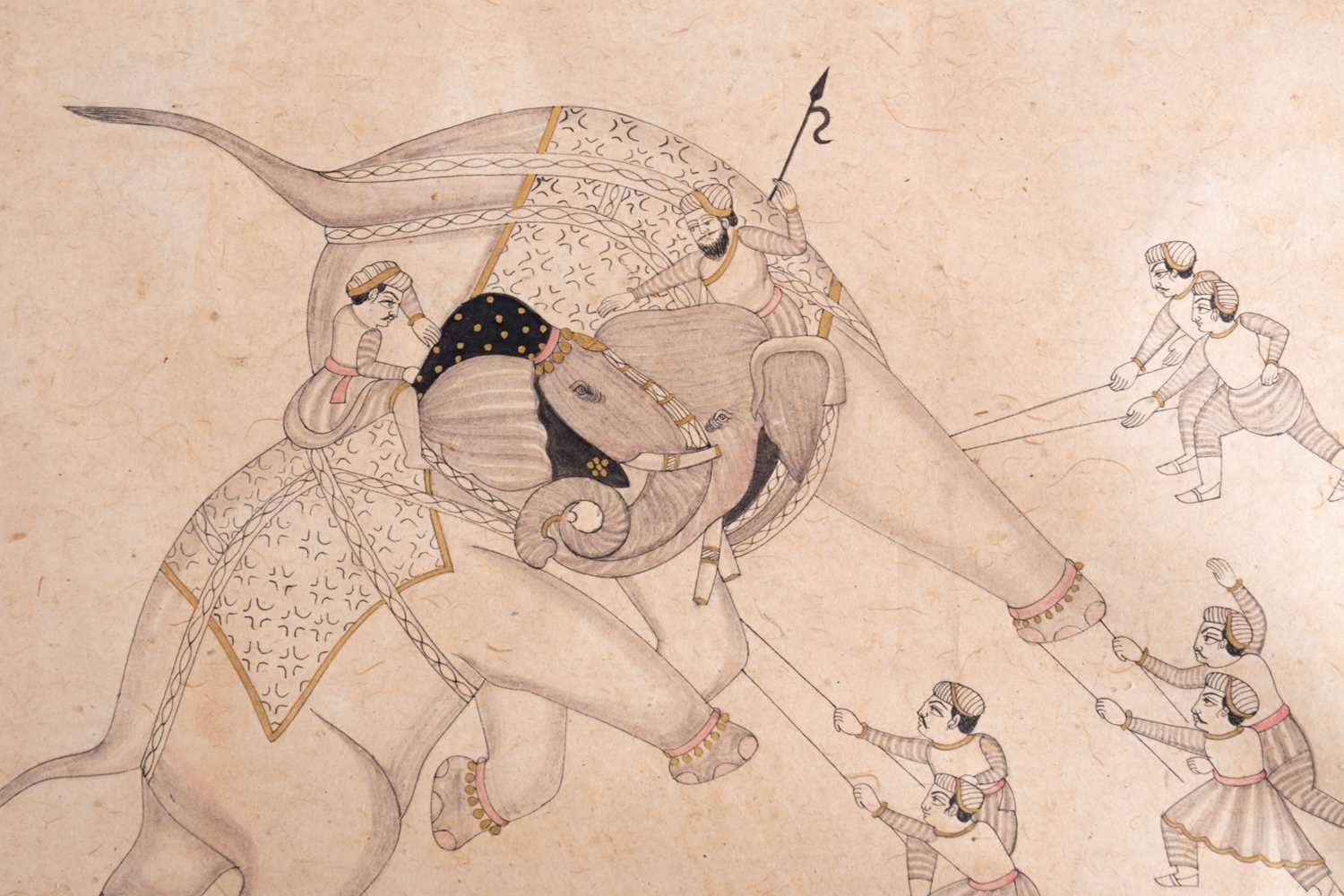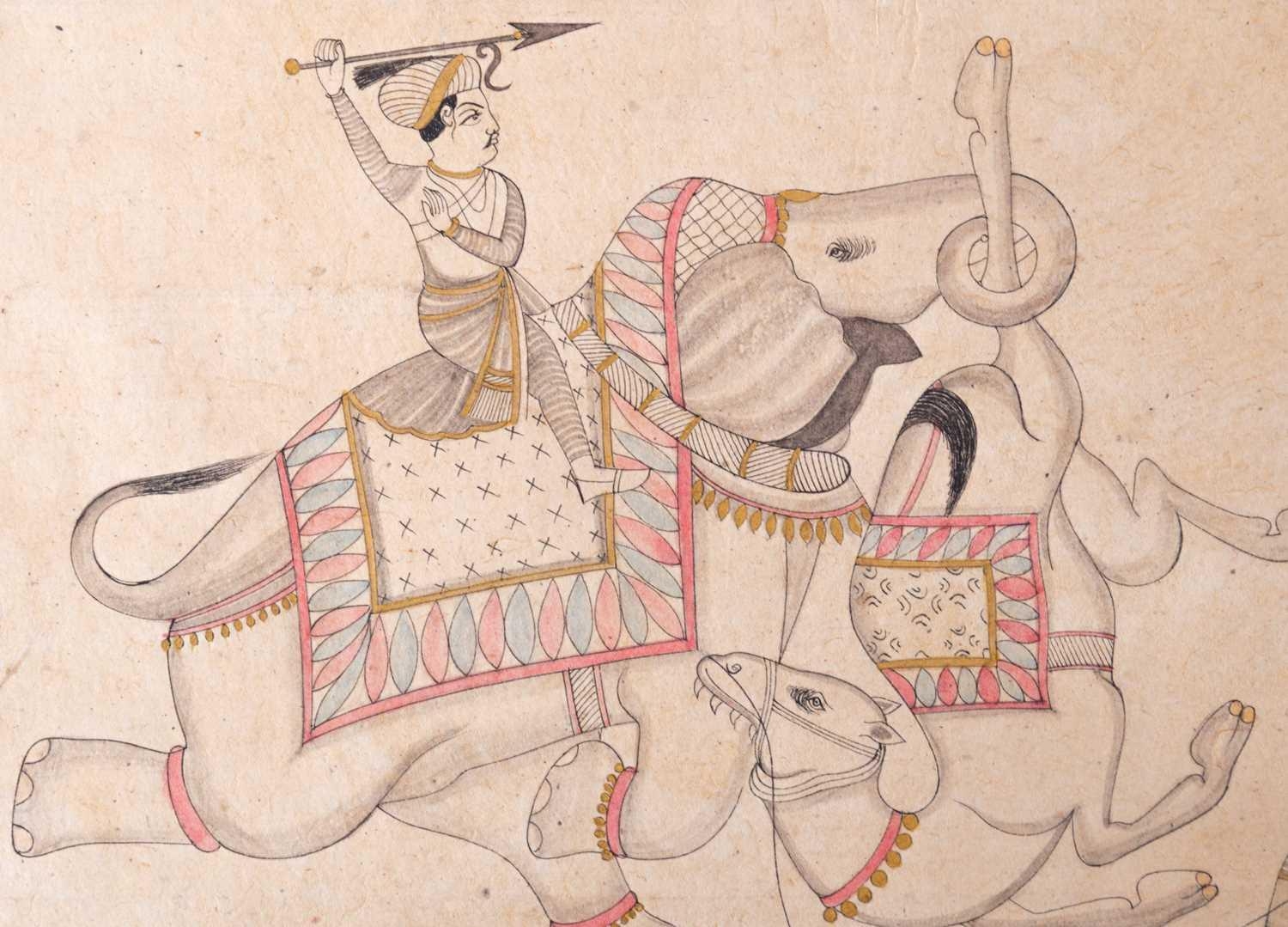 Indian School, 20th century a group of three watercolours and ink on paper, depicting two battle scenes and a half length portrait of a bearded man, unframed, 17 cm x 24 cm (largest). (Qty: 3)