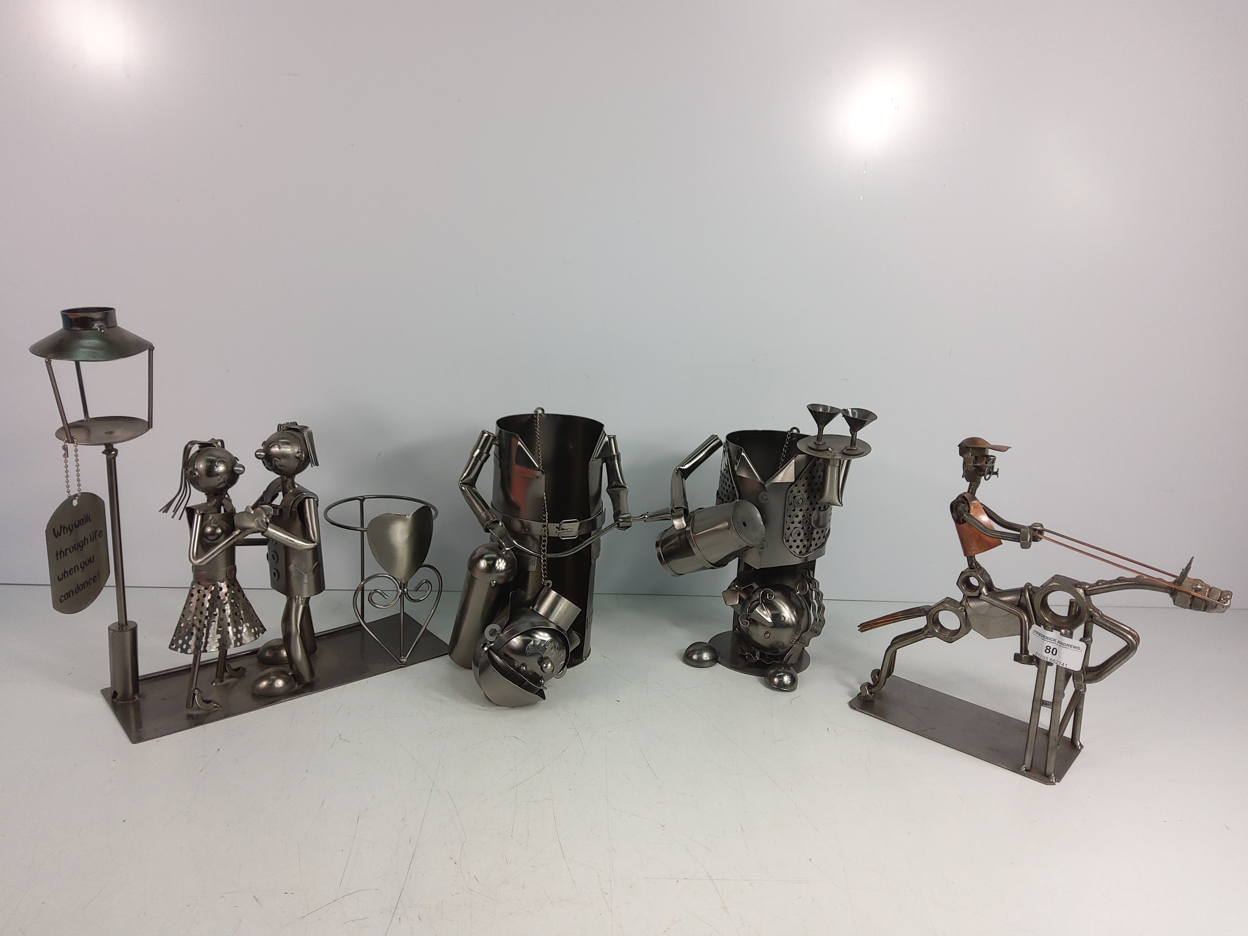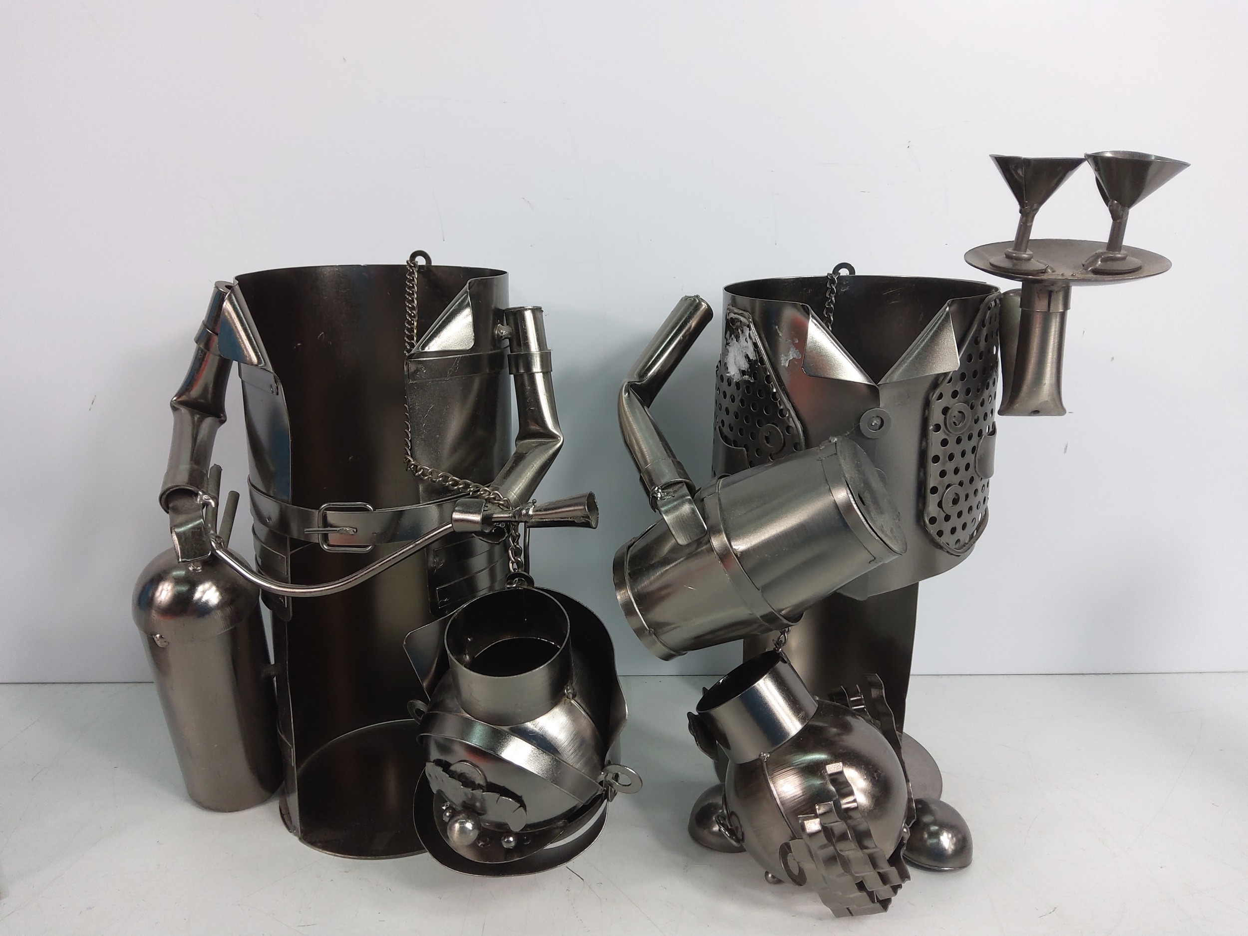 Metal bottle holders and figures