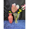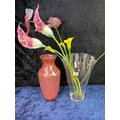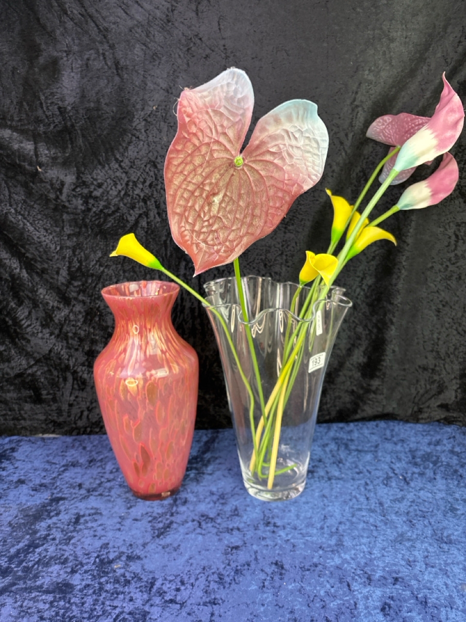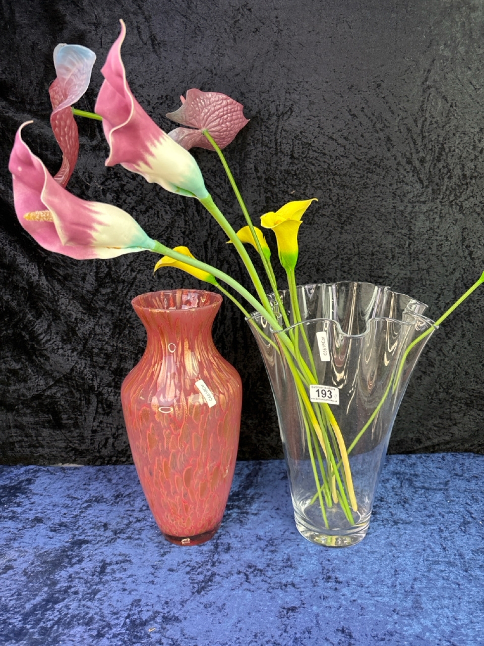 2 elegant large glass vases 1 handblown likely Phoenician glass, the other clear glass wave style rim H38cm