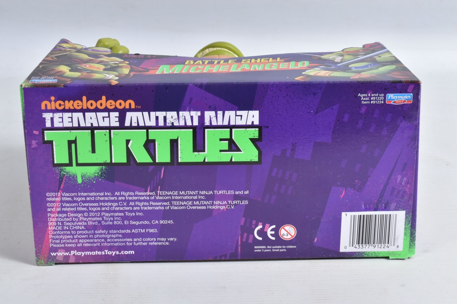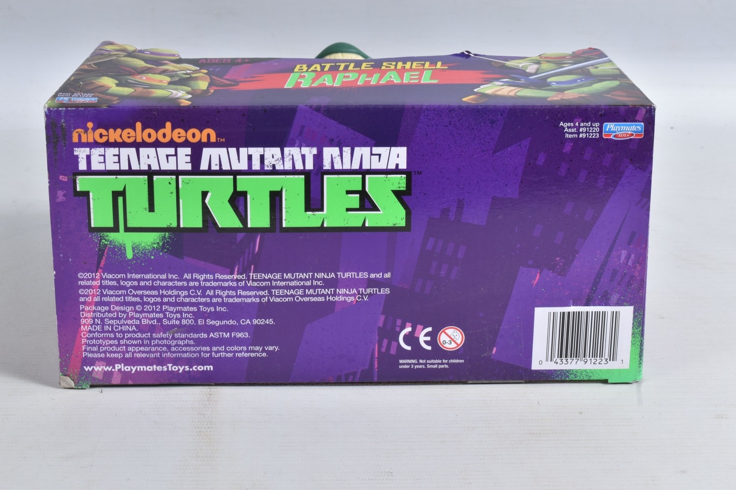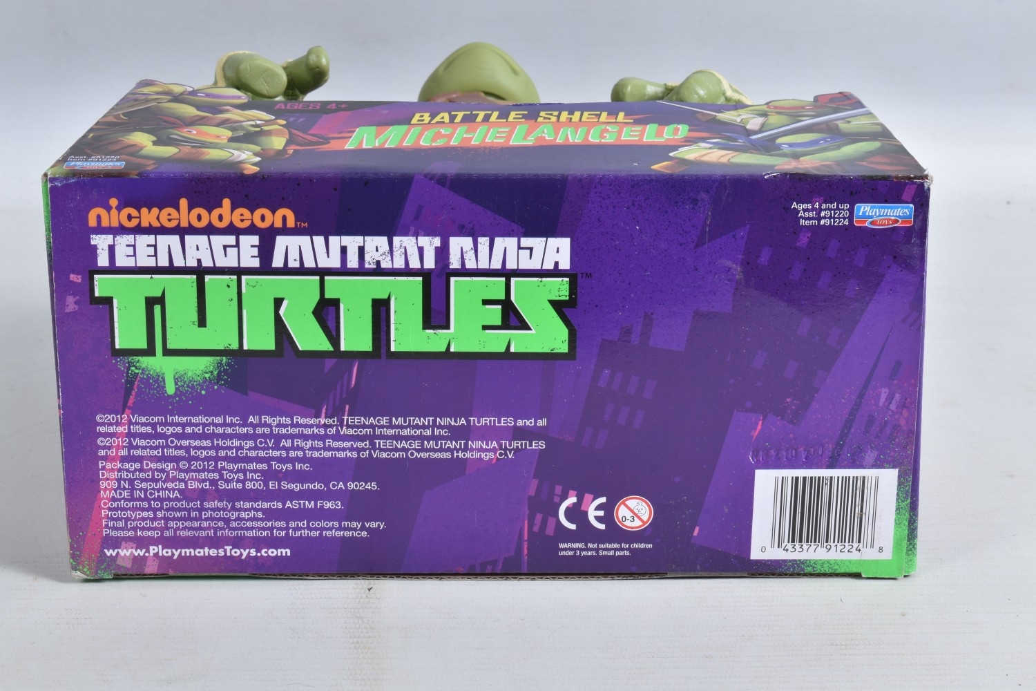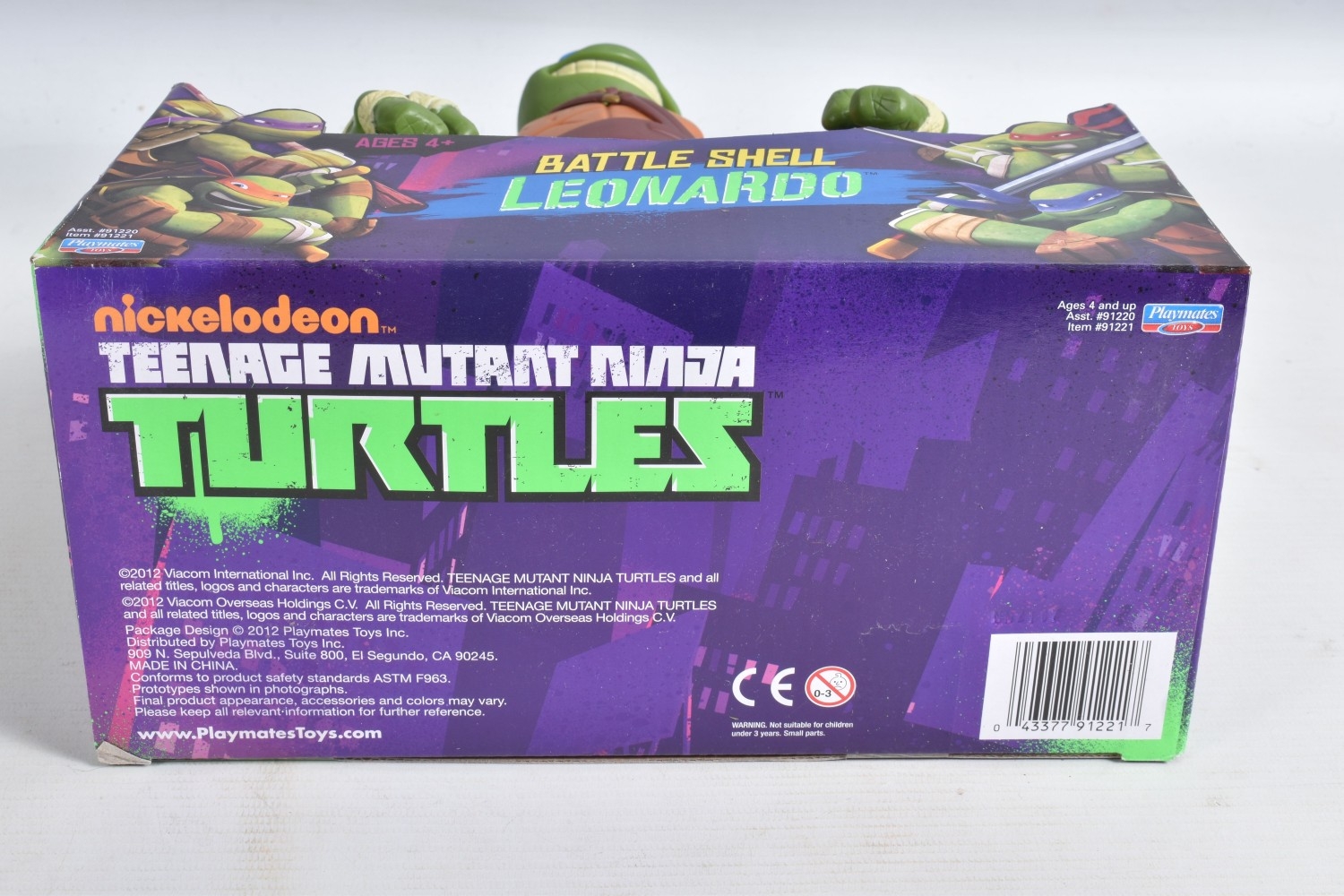 FOUR BOXED PLAYMATES NICKELODEON TEENAGE MUTANT NINJA TURTLE BATTLE SHELL MODELS, to include Leonardo 91221, Raphael 91223, Michelangelo 91224, Donatello in a 91224 box, other than the manufacturing error all appear in a new condtion wirh light dust