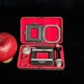A Rollei Rolleikin 35mm film adapter kit. Missing the exposure counter/rewind knob and additional viewfinder masks. Housed in original case.